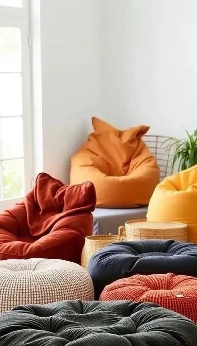 - Яркие цвета и принты: диван-пуфы становятся акцентным элементом интерьера.