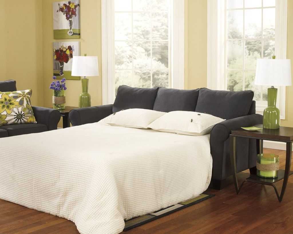 Существуют разнообразные варианты спальных мест. Один из них кровать-диван. Собранная, она выглядит, как обычный диван со спинками.