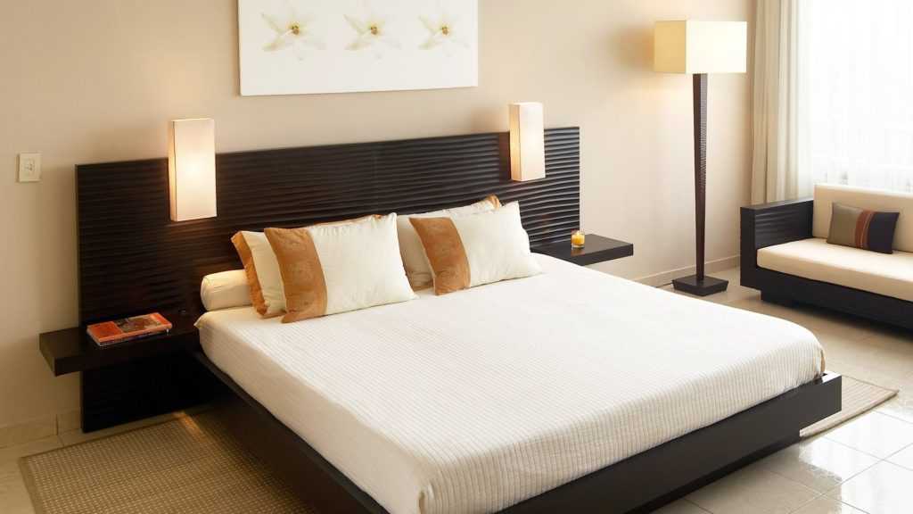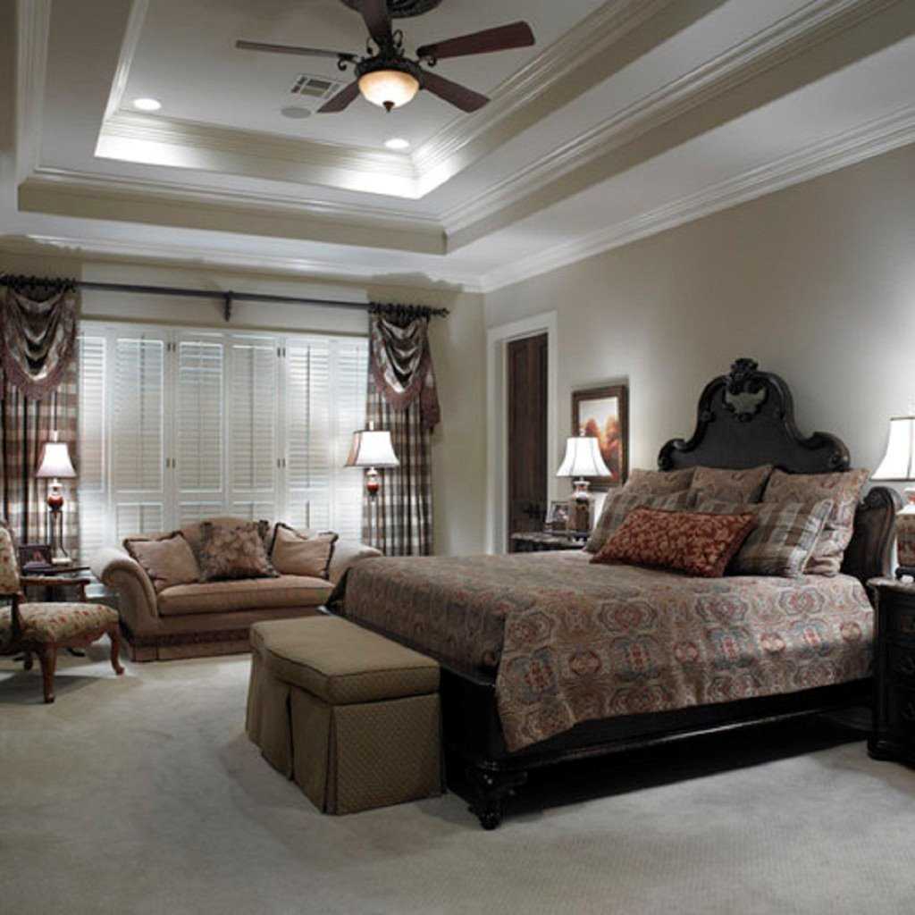 Дизайнерами придумано множество вариантов взаиморасположения кровати и дивана для большой спальни.