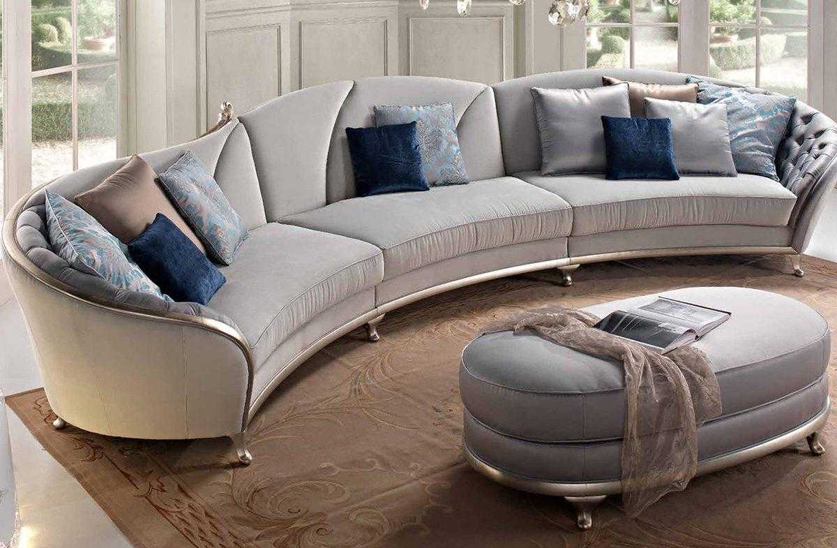 В случае решения прикупить стильный полукруглый диван большого размера, нужно понимать, что именно он становится основным акцентом просторной гостиной или другой немаленькой комнаты. Количество посадочных мест в таком случае должно быть не менее 5 – 6. Диван не должен перекрывать доступ к шкафам или проходу в другую комнату, чтобы не создавать эффект загроможденности.