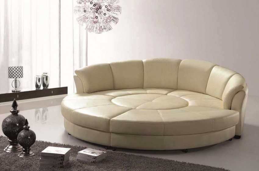 Если же ваша гостиная будет иногда будет превращаться в спальню для гостей, то чудесным вариантом станет круглый диван трансформер.