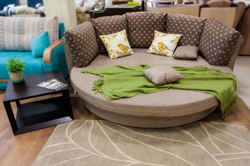 В спальню не подойдет модульный вариант. Собранные вместе, элементы составляют много швов и не предоставляют идеально ровной поверхности. А монолитный или раскладной круглый диван подойдут вполне.