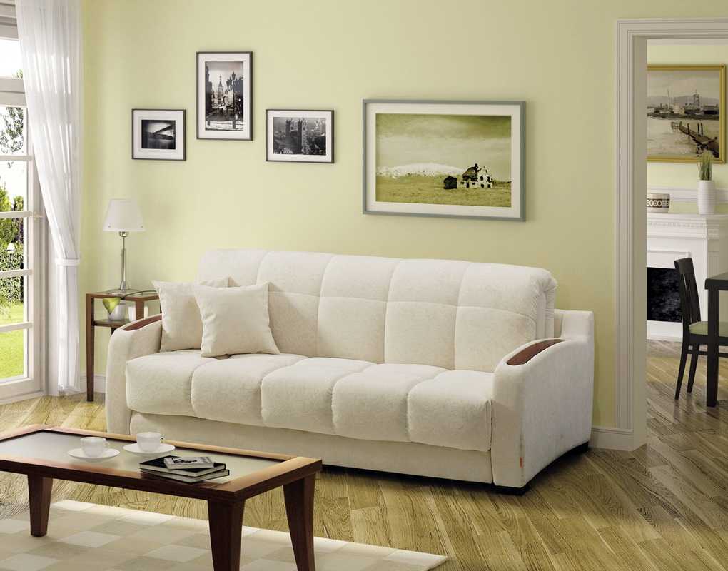 Наполнение и функциональность. Диваны с механизмом часто имеют встроенные бельевые ящики. Это позволяет рационально использовать окружающее пространство, убрать из спальни громоздкие комоды и тумбы. Преимуществом станут съемные подлокотники, встроенные торцевые полки.