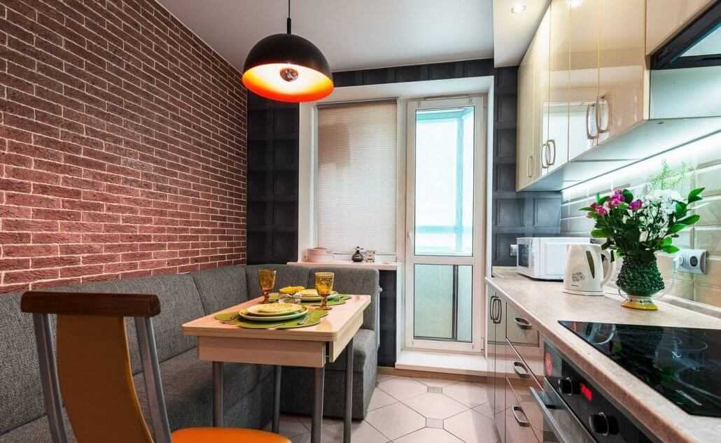 Если же планировка кухни 10 кв. м предполагает установку дивана непосредственно в комнате, вы можете реализовать одну из следующих идей:
