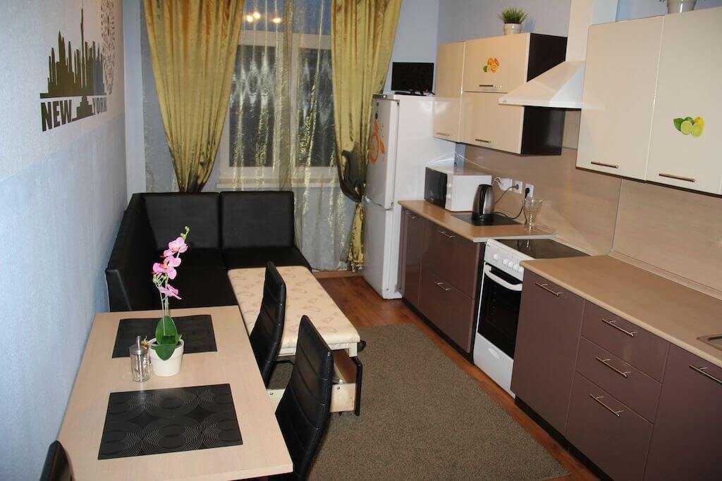 Одним из лучших вариантов будет прямой диван с небольшим обеденным столом. Он сделает кухню уютной для длинных посиделок с семьей или гостями. Хорошим решением будет сделать такой диванчик под заказ с индивидуальными габаритами и особенностями, но при нежелании переплачивать его можно приобрести и в мебельных магазинах, где много подобных моделей.