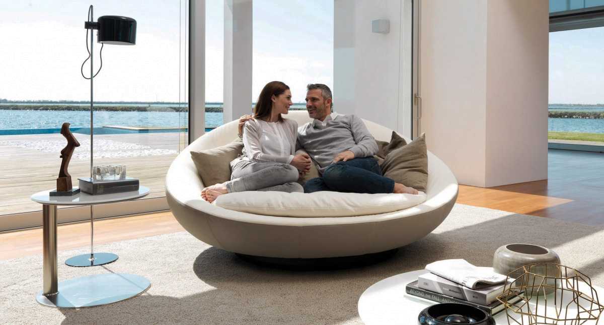 Диваны круглой формы обычно используют в качестве объекта — акцента в помещении, вокруг которого выстраивается композиция всего интерьера.
