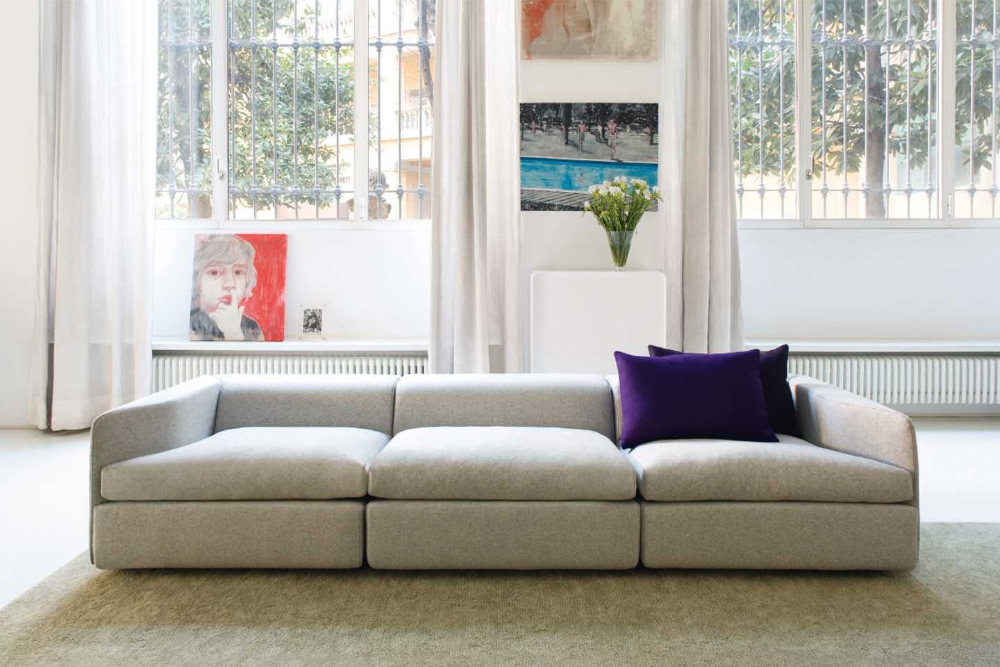 Диваны могут быть стационарными (форма и размер не меняются) и подвижными, модульными (разные блоки можно менять местами по своему усмотрению). Такие модели могут размещаться в разных частях комнаты: в углу, вдоль стены или посередине.
