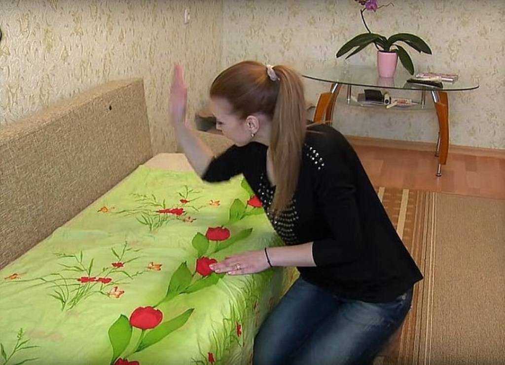 Существует выбивание бывает сухое и влажное. При сухом методе пыль из дивана устраняется специальной пластиковой лопаткой или любой подручной палкой. При влажном методе – диван сначала накрывают мокрой простыней и затем выбивают. Этот способ не позволяет разлетаться пыли по квартире.