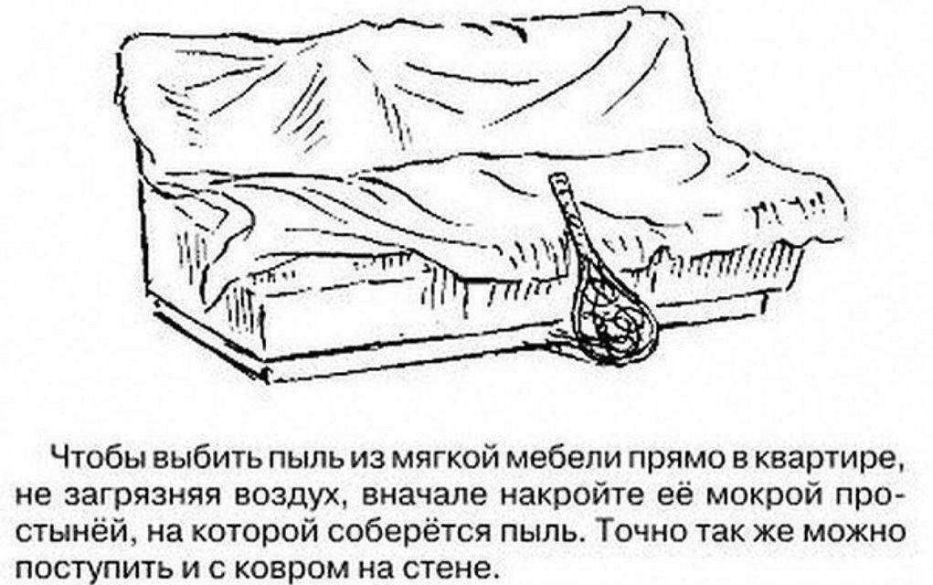 Этот способ является прекрасной альтернативой пылесосу. Особенно хорошо этот метод подходит для ткани с ворсом, пропылесосить которую не так просто. Преимущества выбивания в его простоте и в том, что оно не повреждает краски ткани.