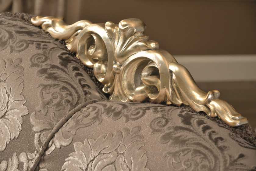 Широкое распространение в дизайне гостиных в стиле неоклассика получают позолоченные и посеребренные детали, такие как ножки кресел, диванов, мотивы орнамента.