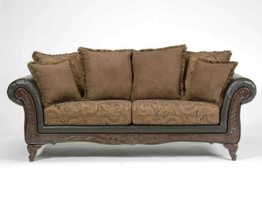 Диван коричневого оттенка стоит сочетать с мебелью из натурального дерева и бежевыми стенами.
