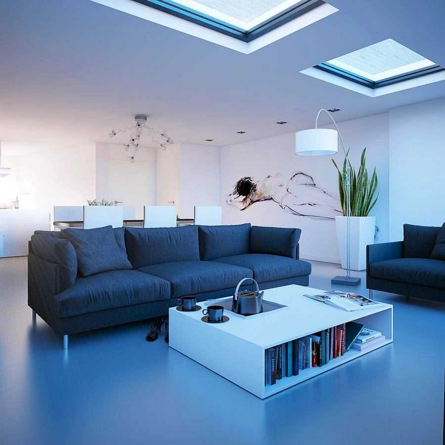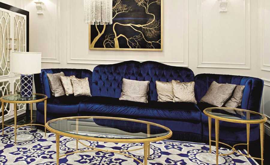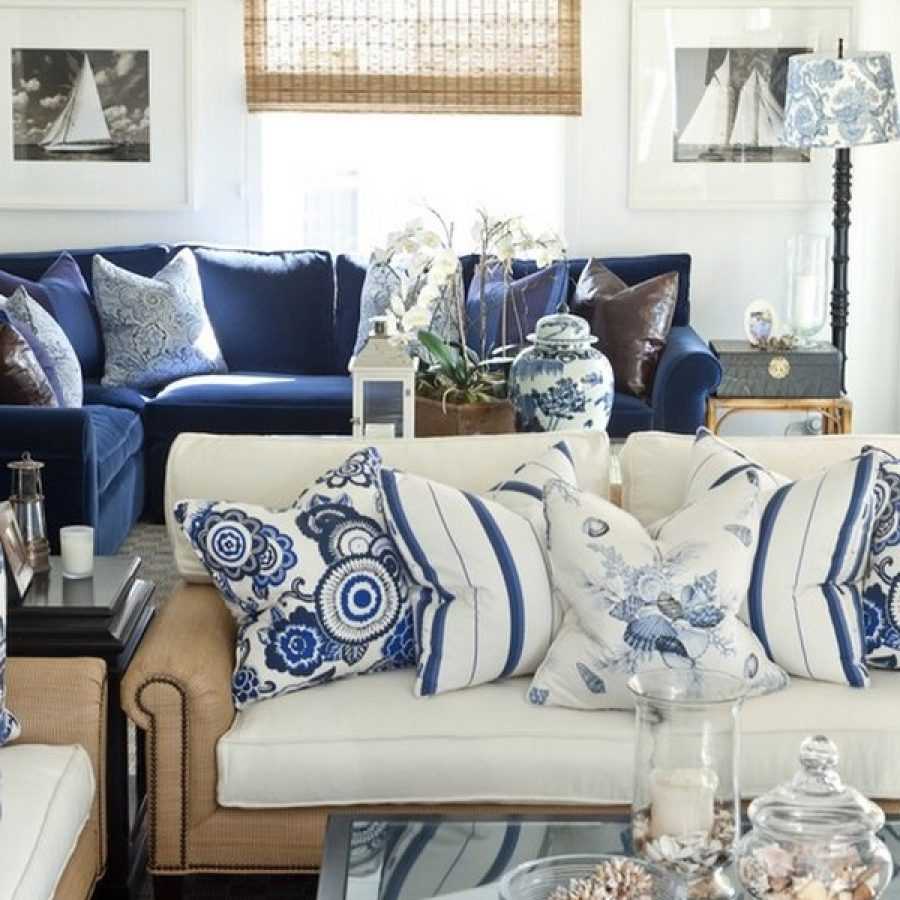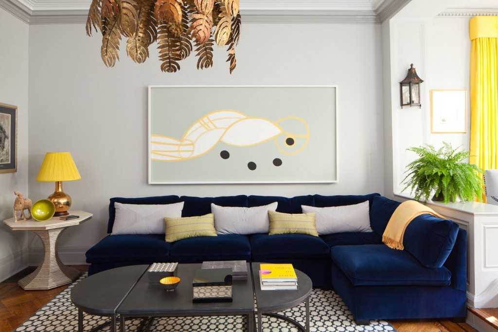 Как оформить гостиную с синим диваном
