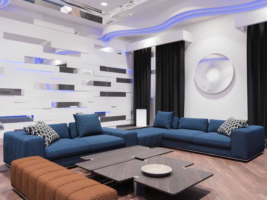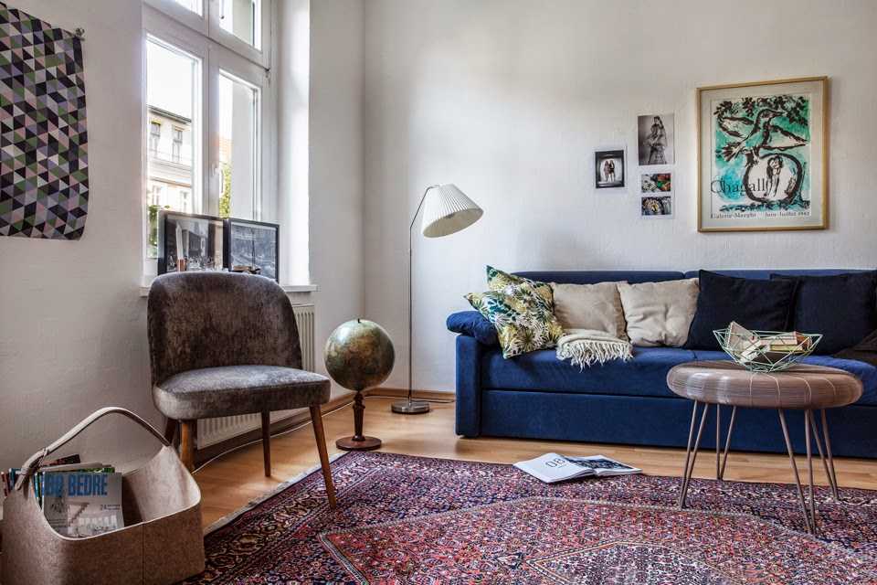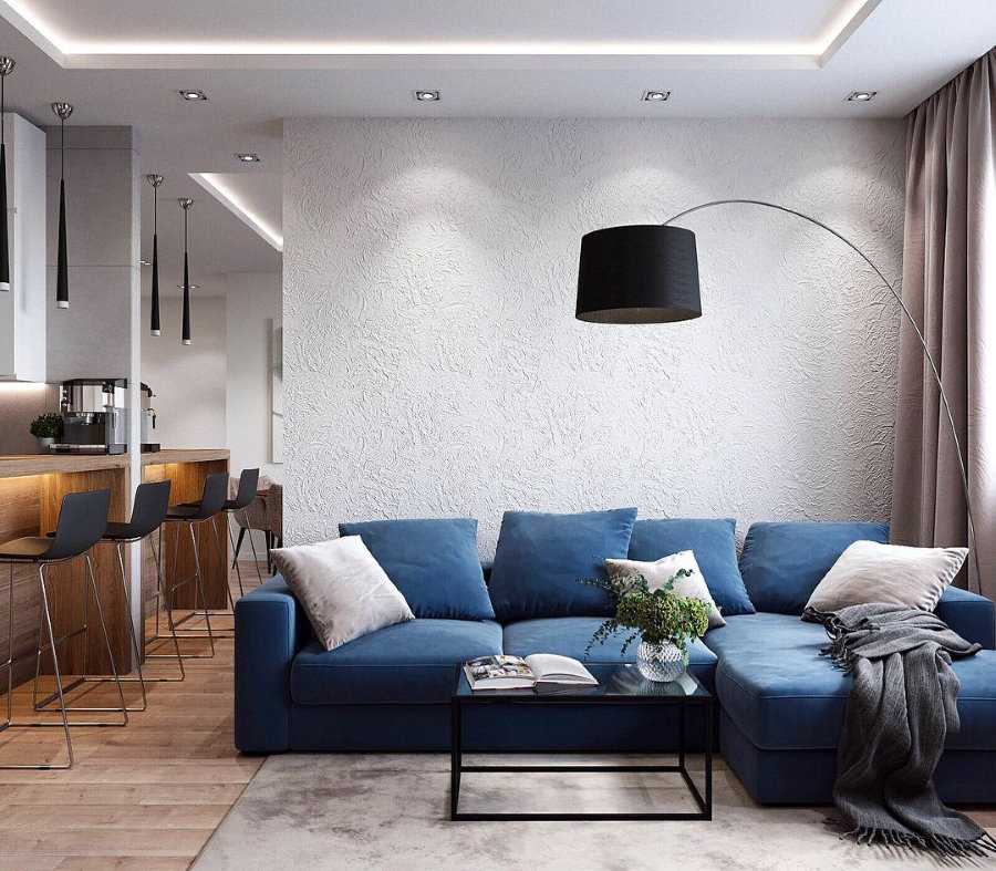 Выбор стилевого направления для интерьера комнаты с синим диваном