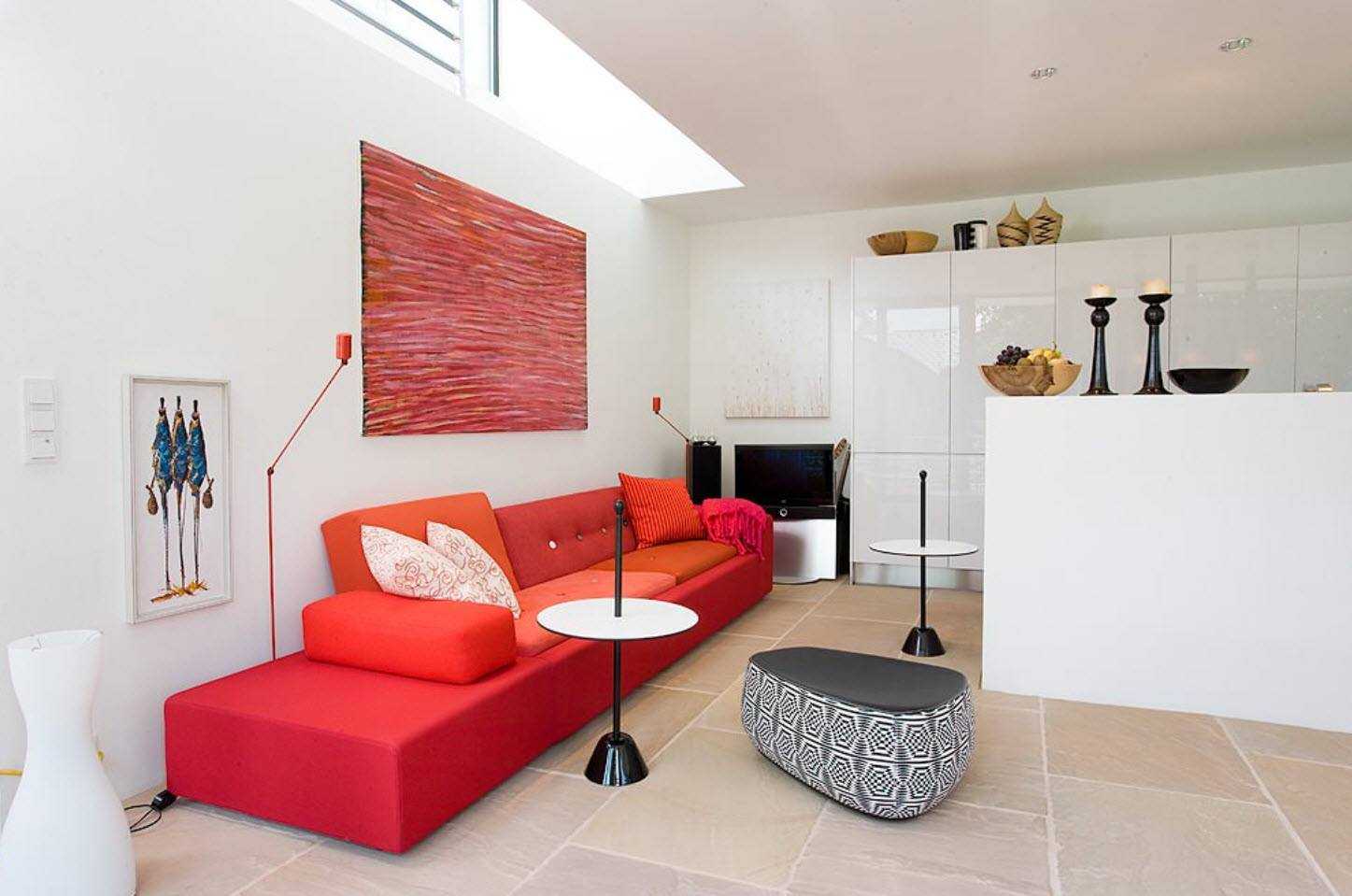 Красный цвет в интерьере необходимо применять очень дозировано. Красный диван создает особый акцент, который нужно правильно преподнести, чтобы он не раздражал и не утомлял людей, находящихся в комнате каждый день. Предмет мебели такого оттенка говорит об оригинальности вкуса, и не оставит равнодушным никого. Чтобы создать стильный дизайн с использованием красного дивана, необходимо знать, как правильно подобрать контраст и не перейти ту грань сочетания оттенков, когда оригинальный стиль превращается в китч.