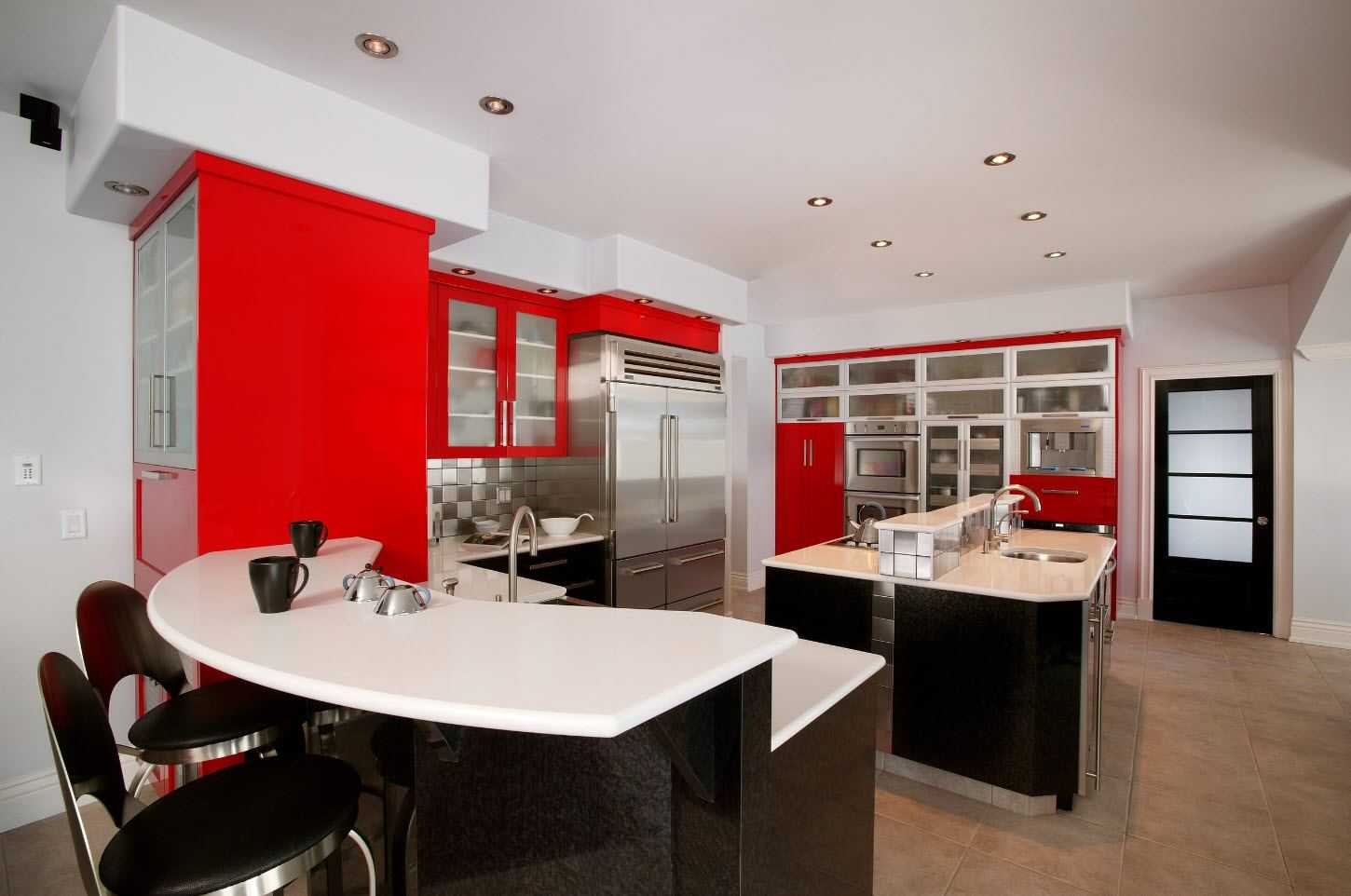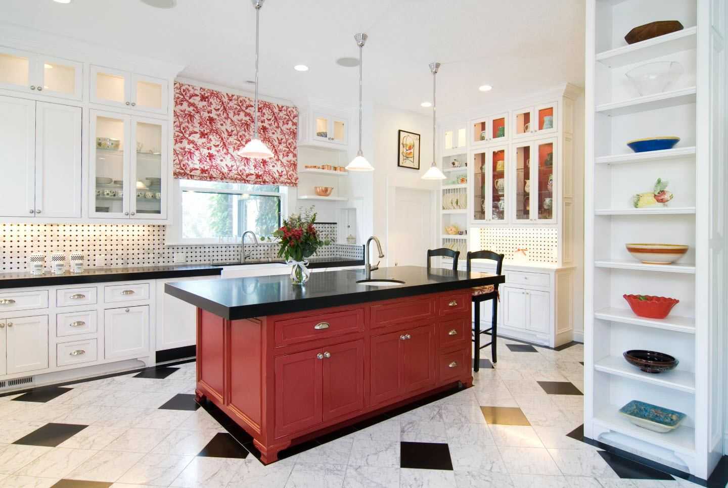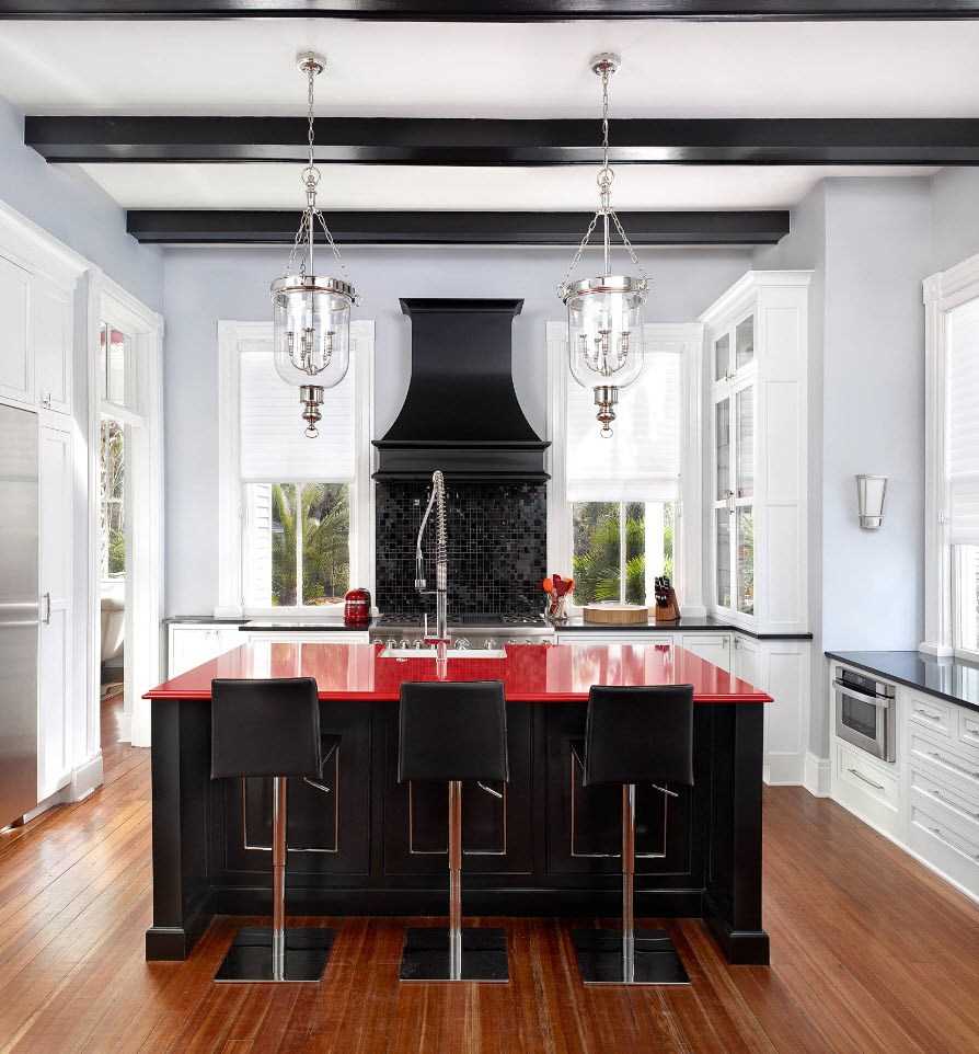 Интерьер красно-черно-белой кухни: рецепт идеального стиля