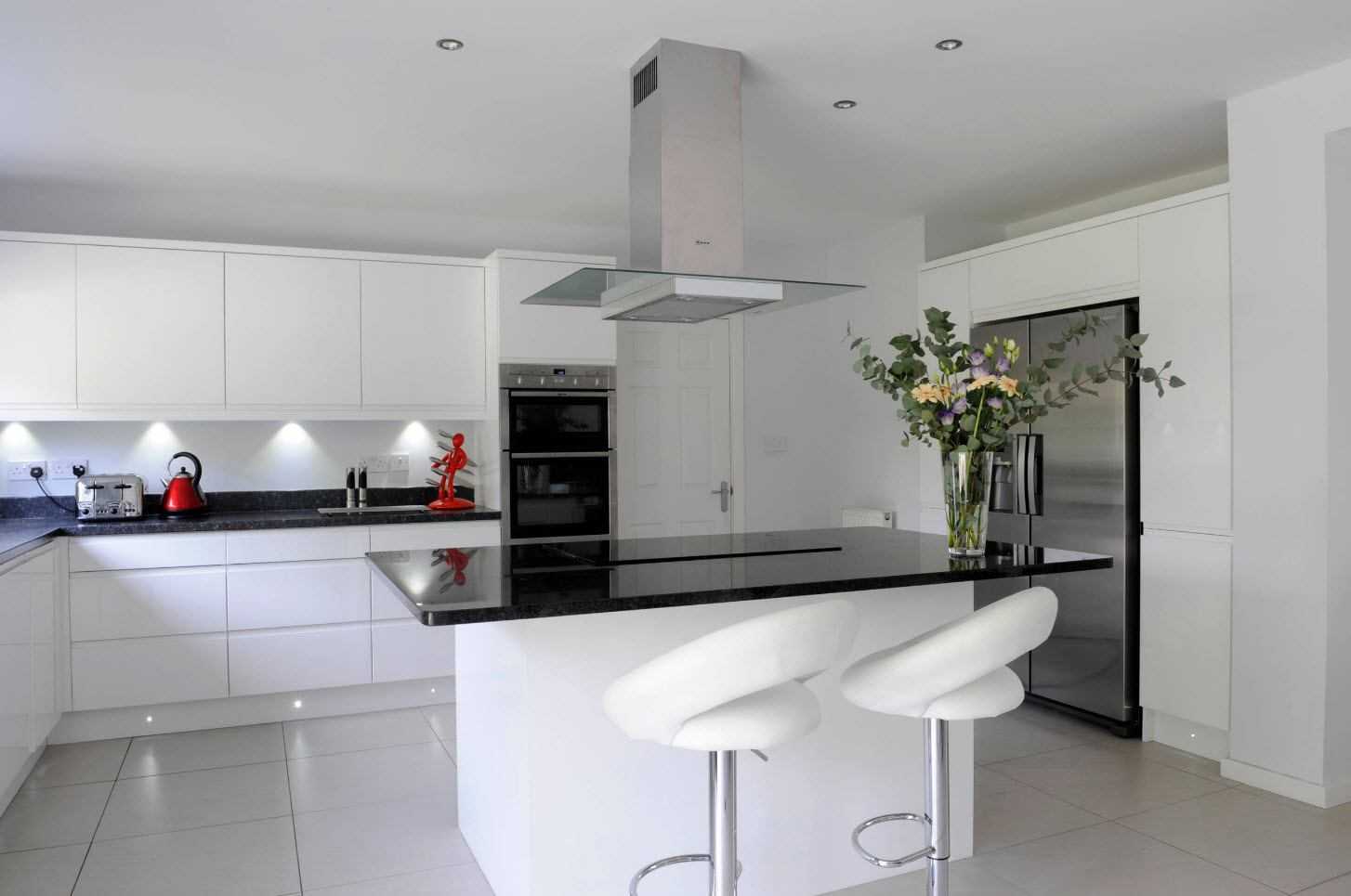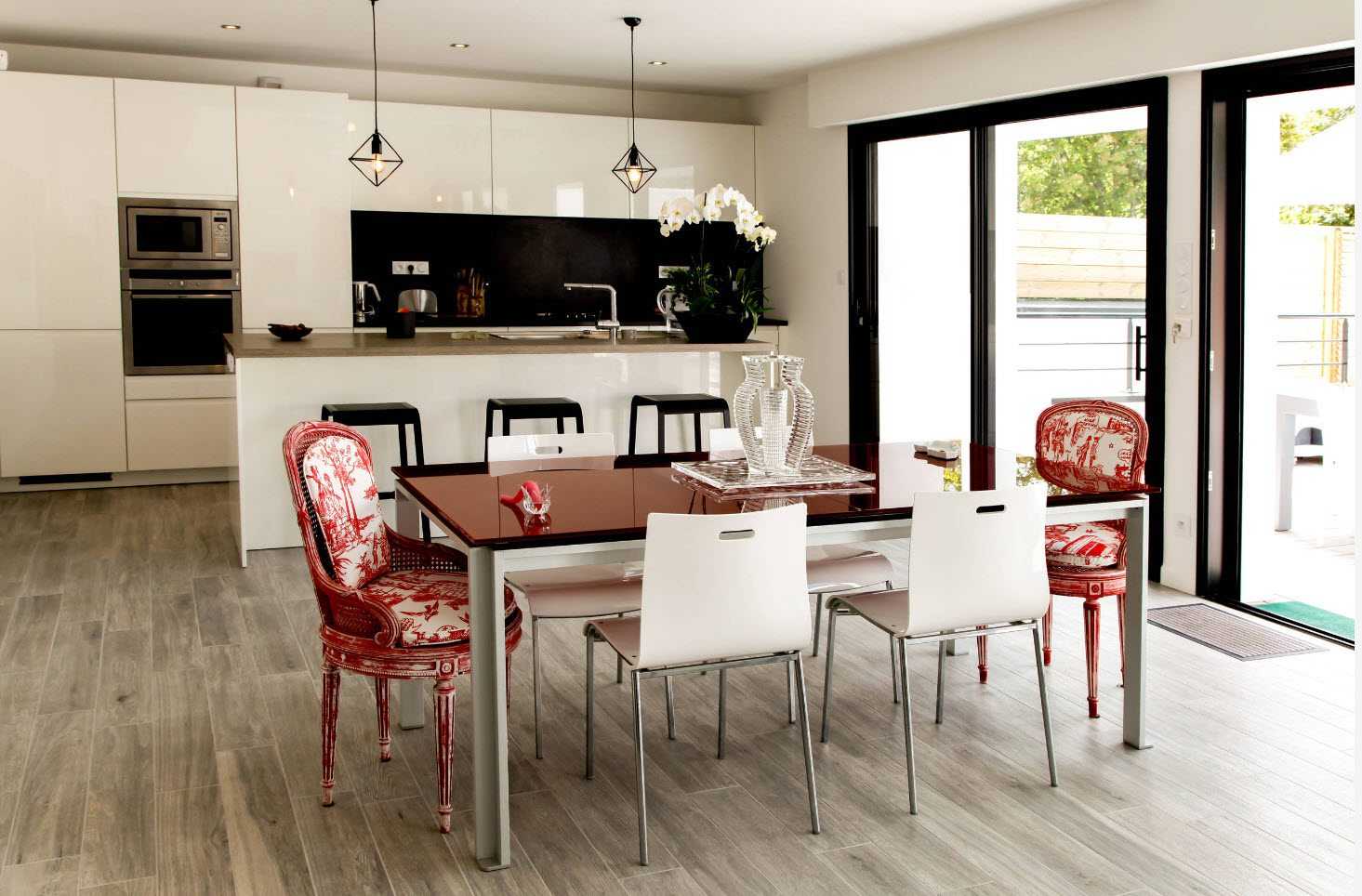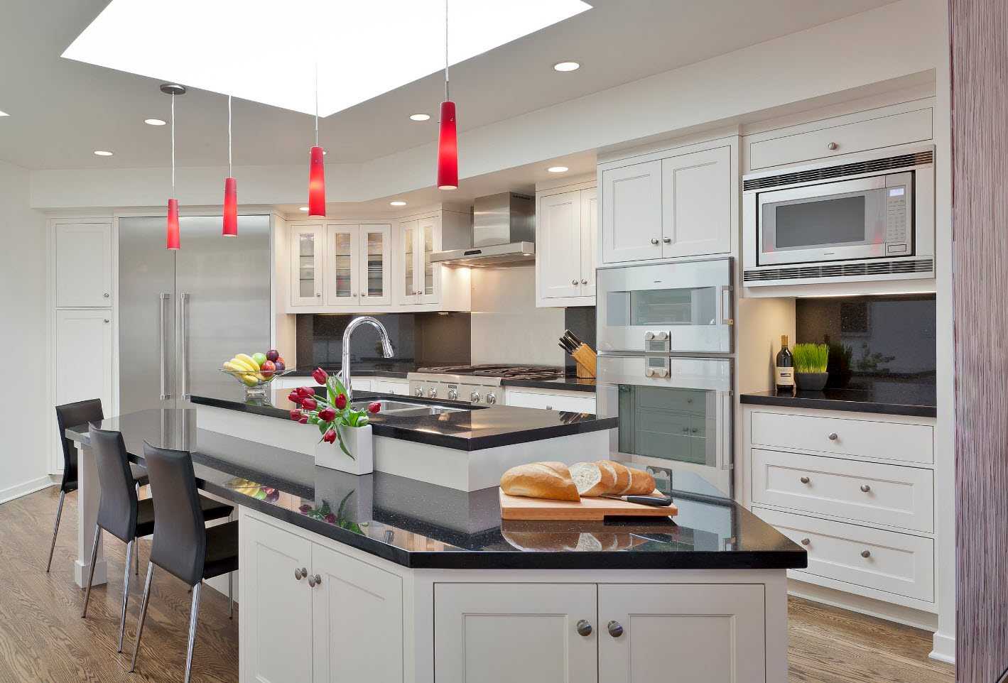 Интерьер красно-черно-белой кухни: рецепт идеального стиля