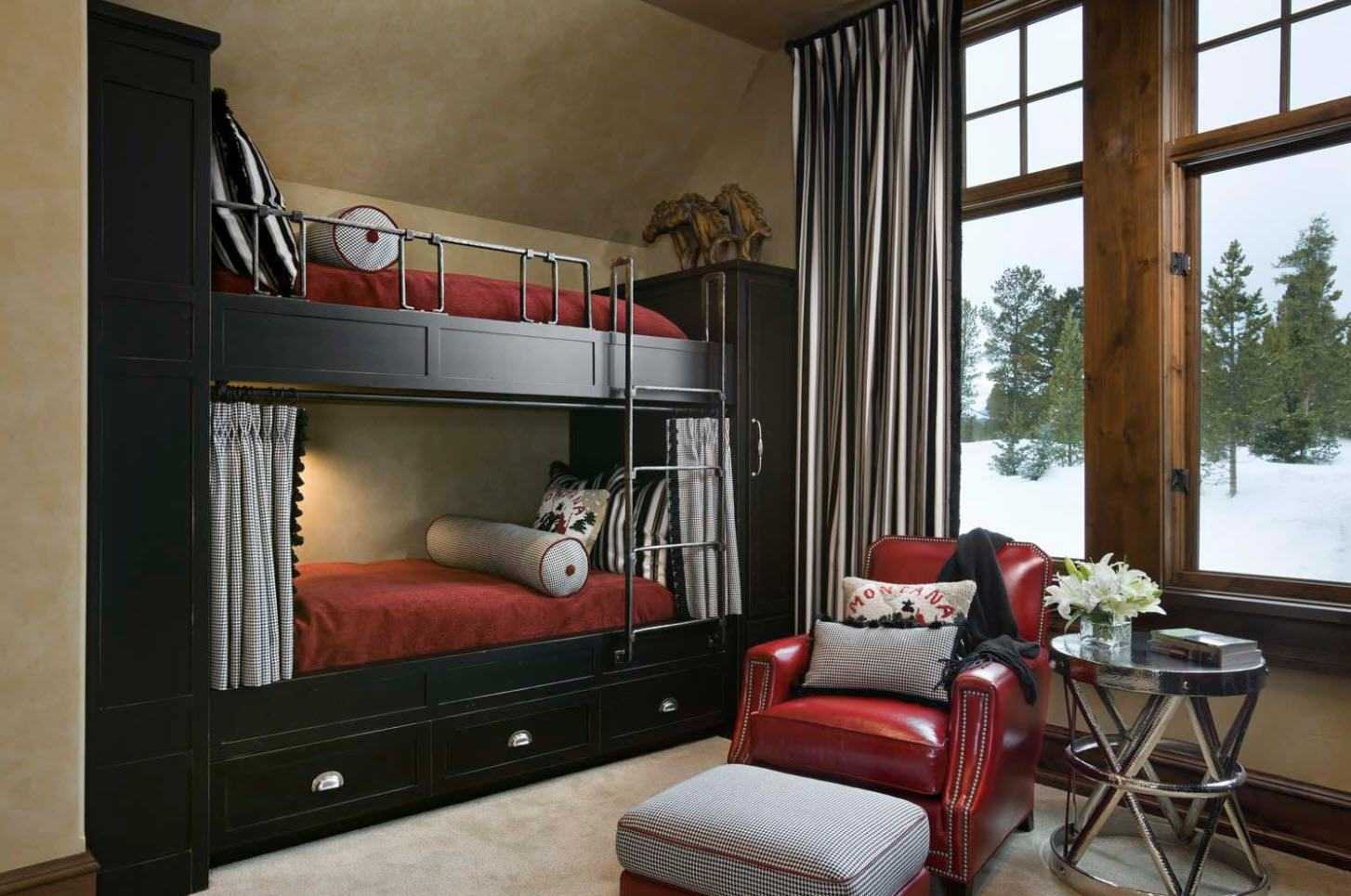 Считается, что серый, черный и коричневый цвет – это чисто мужской стиль. Современная модульная полированная черная мебель в интерьере и темные шторы делают жизненное пространство комнаты безукоризненным для мужчин.