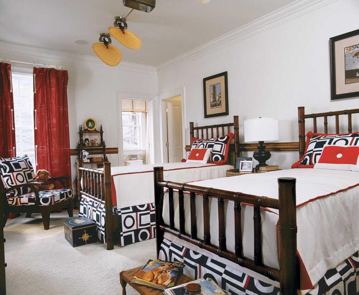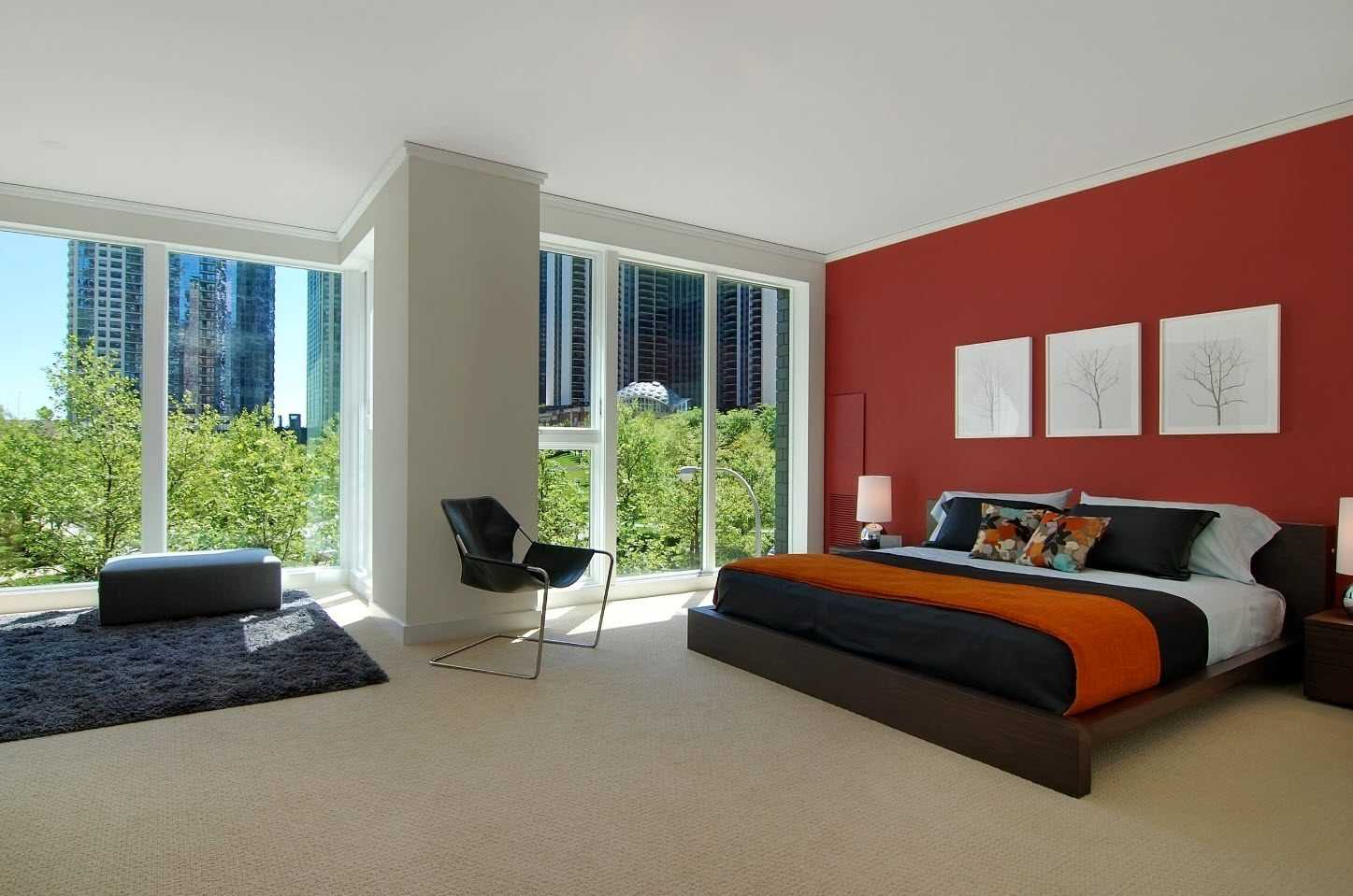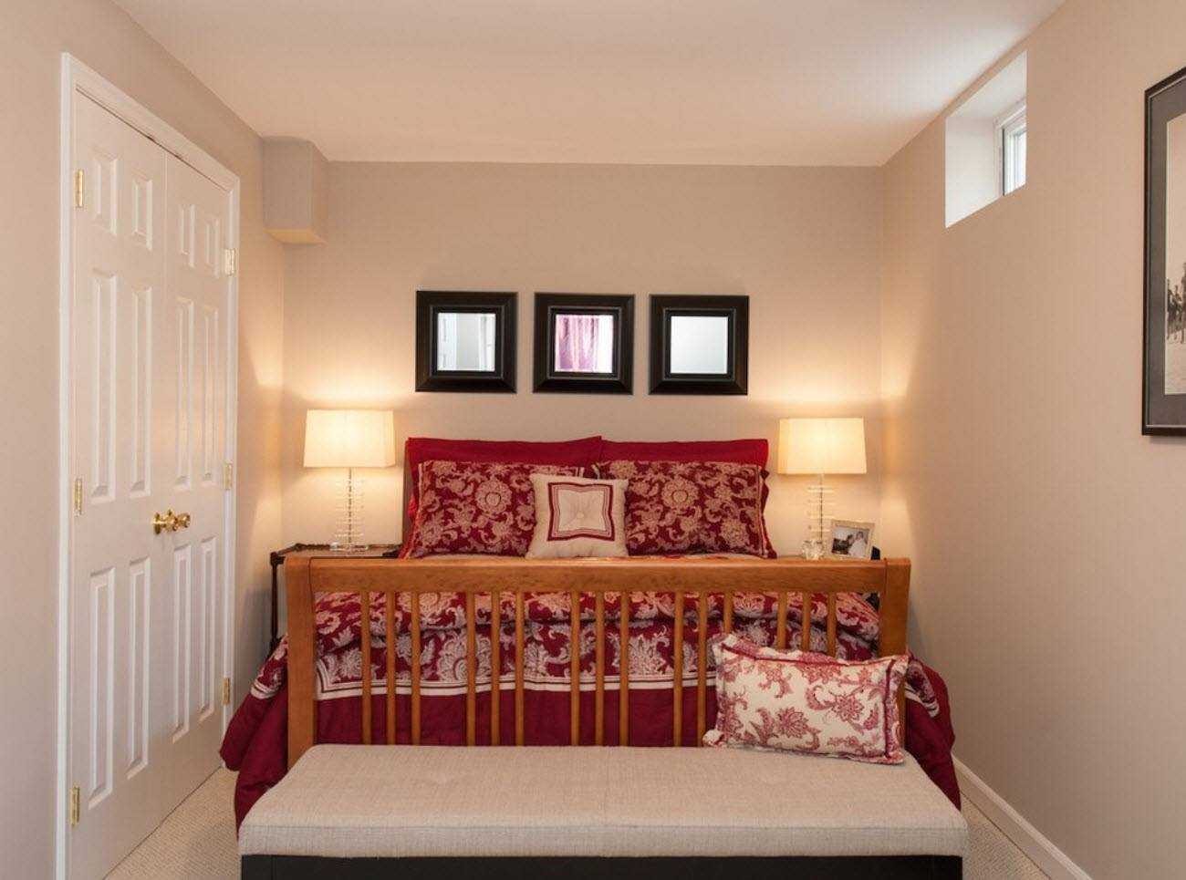 Чудесно сочетается красный с коричневым, такие решения применимы и для спальни, и для гостиной. Позаботьтесь об аксессуарах, которые гармонично завершат антураж: подушечках, картинах, стильном ковре.