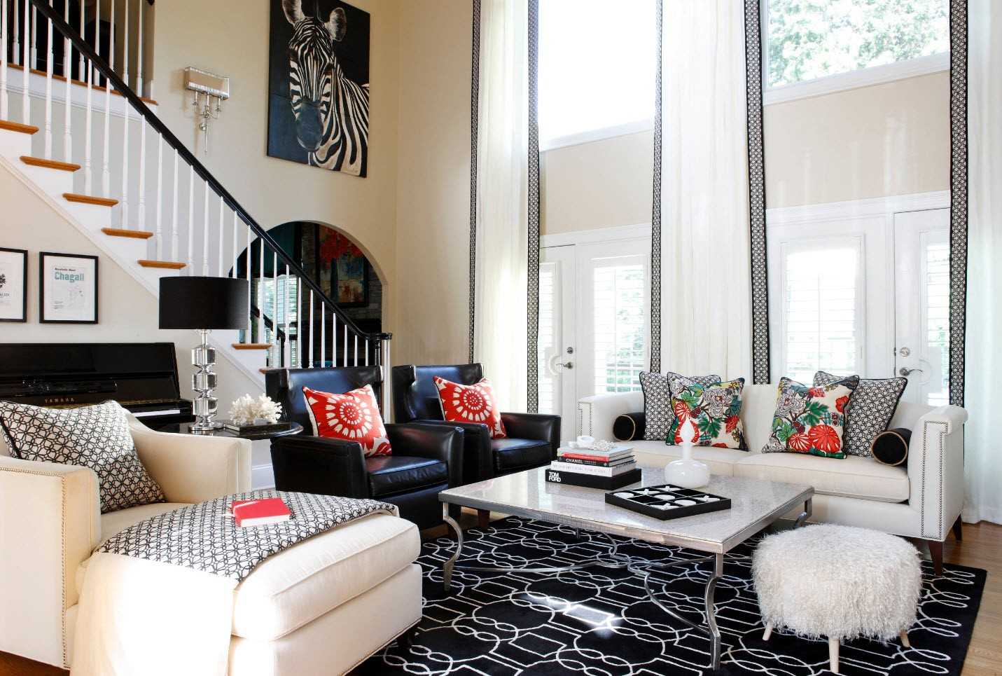 Красный цвет оживит интерьер и придаст ему характер, но он должен быть искусно использован. Черный характеризует таинственность и престиж, а вот белый станет всегда уместным. Просмотрите фото-галерею, только так вы поймете, какие комбинации в интерьере трех цветов подойдут именно вам.