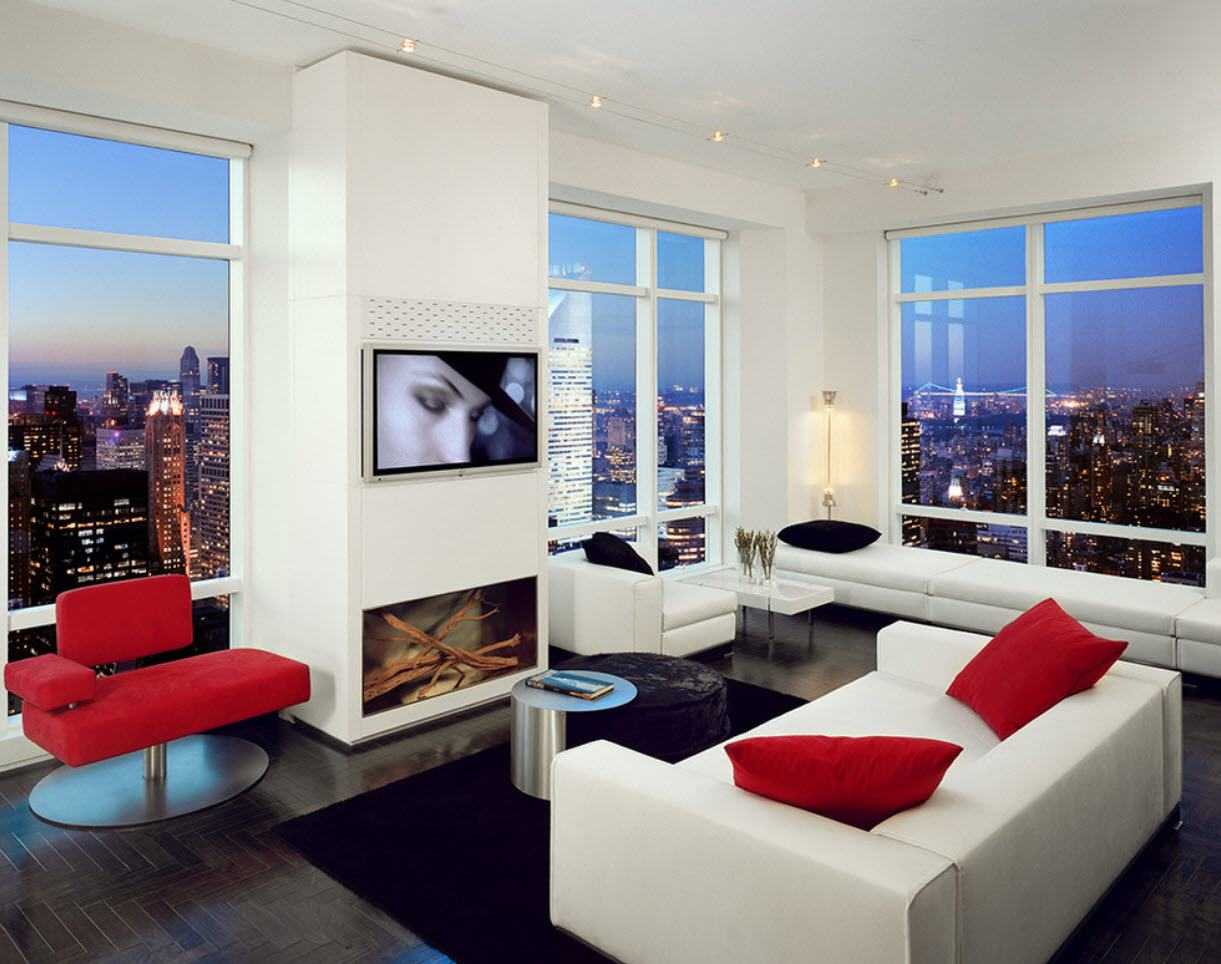 Красный угловой диван и несколько кресел в одном дизайнерском решении уместны в стиле модерн, современная классика, авангард и ампир. При этом владелец апартаментов волен подбирать как простую модульную мебель (лоска придаст именно цвет), так и совершенно сумасшедшие предметы, которые можно отнести в категорию экстравагантного современного искусства.