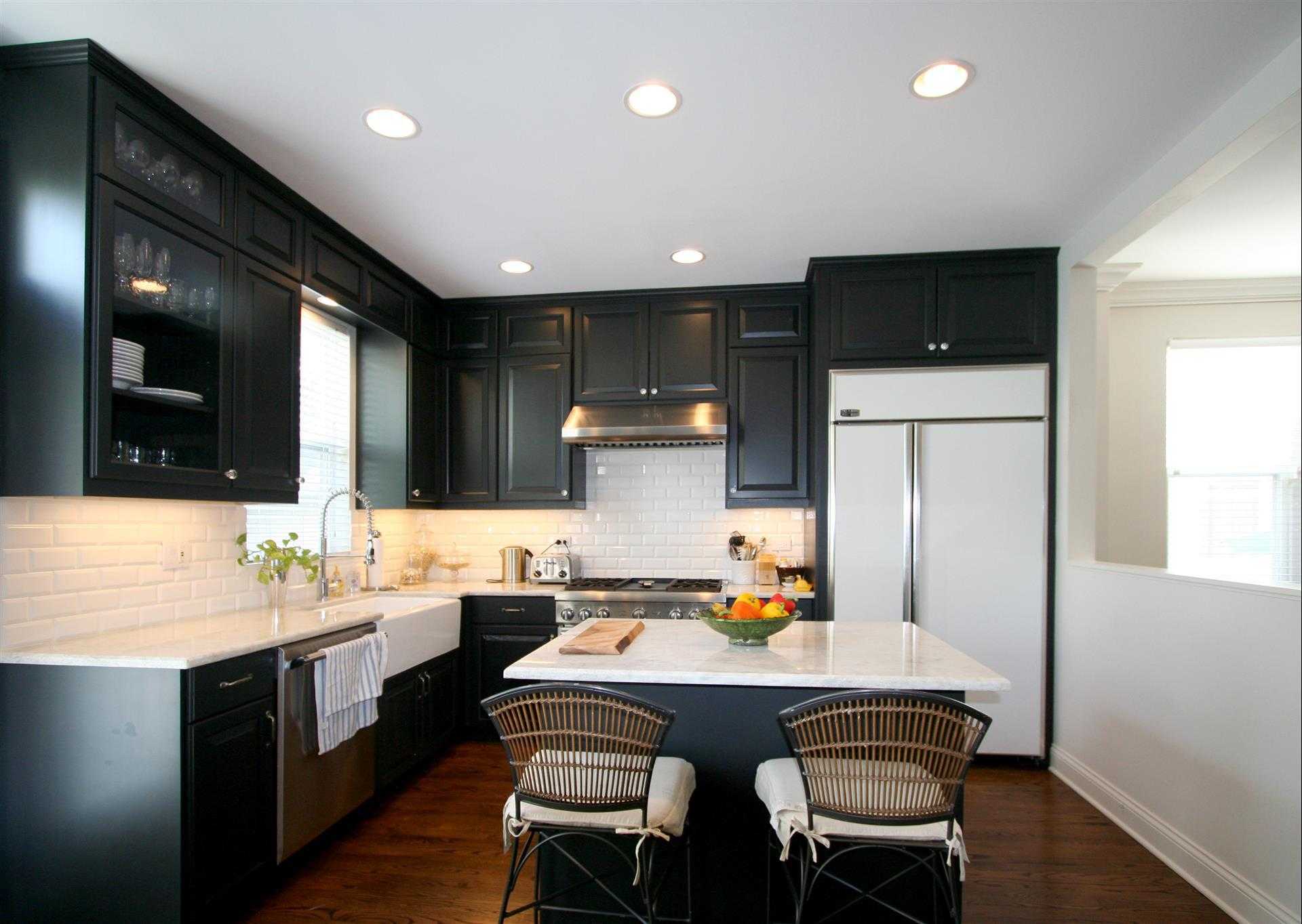 Современные кухни приветствуют ламинированные фасады, которые будут великолепно смотреться в черном цвете. Белые стены станут незаменимой основой, а красный можно добавить в виде ненавязчивых акцентов кухонной техники или живых цветов.