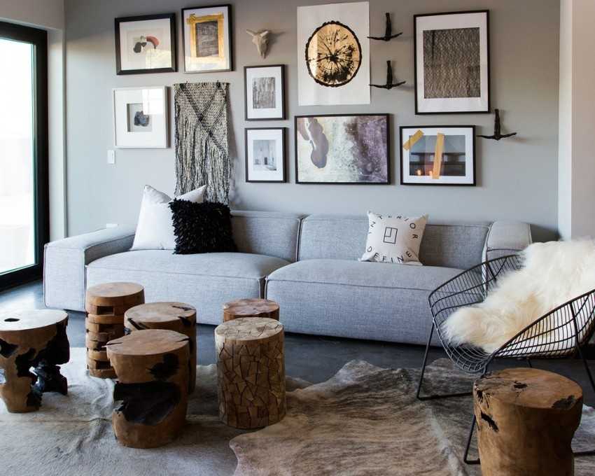 Серый диван в гостиной