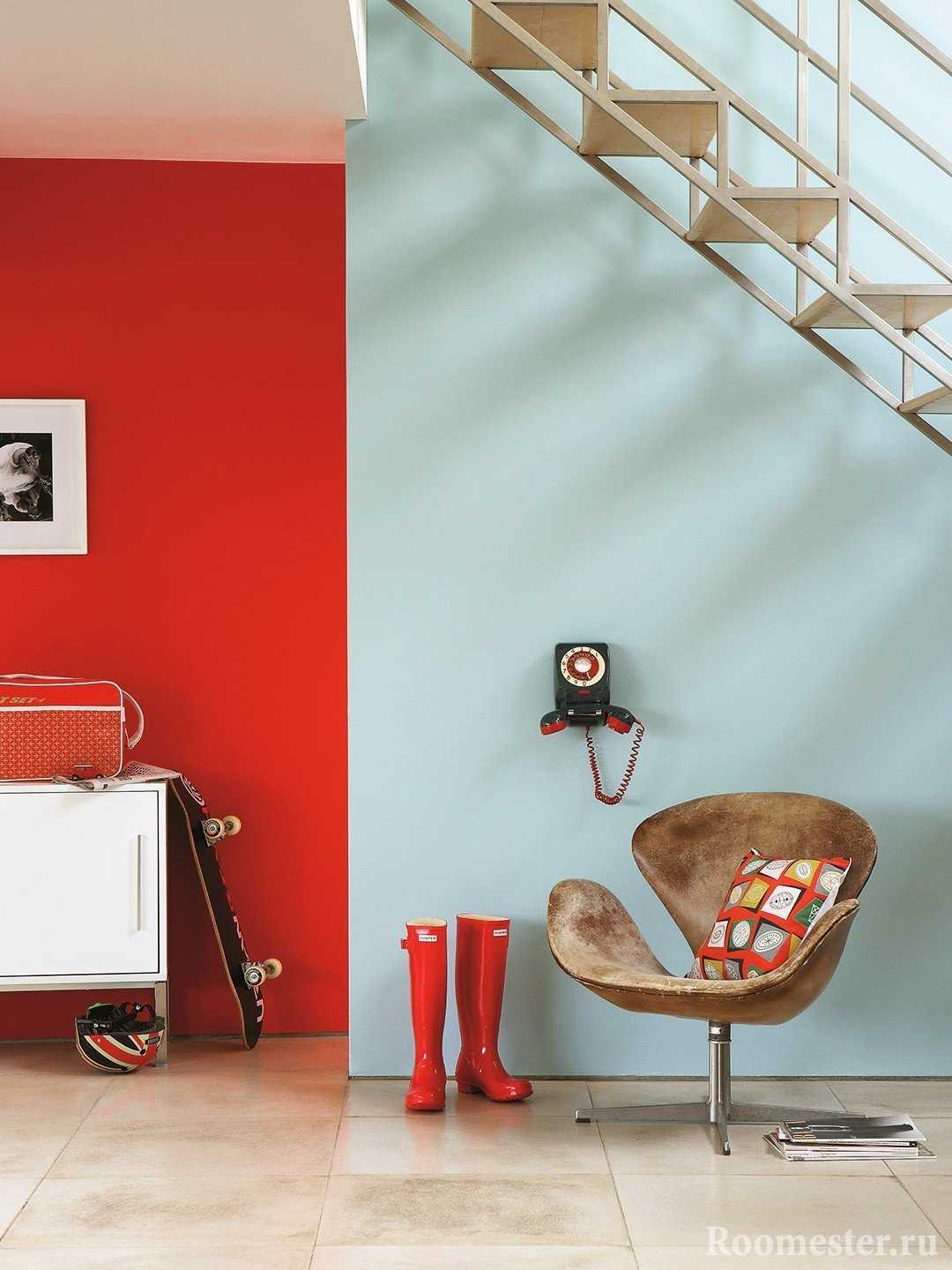 Красно-голубой сочетаются на контрасте и противостоянии холода огню. Для теплого интерьера фоном должен быть алый или винный оттенок, а голубыми – предметы декора.