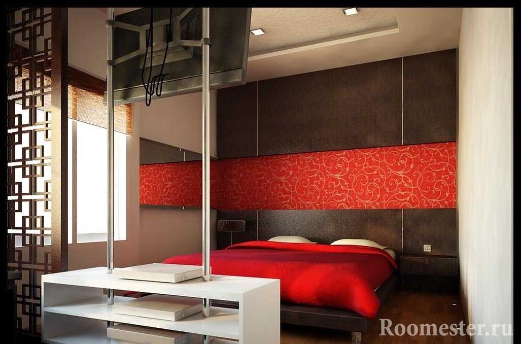 Другой вариант – стены оформить красным цветом и одну стену декорировать белыми вставками, с помощью панелей. Идеальны будут красные обои с крупным белым рисунком, но так же не на всех стенах, а выделить одну. Ненавязчиво будут смотреться бежевые обои, дополняемые красными элементами мебели и декора.