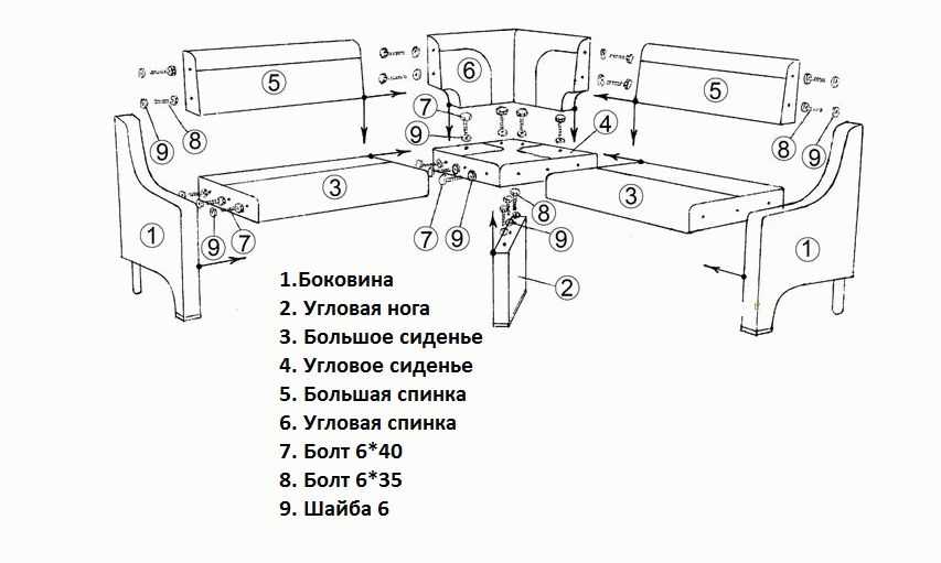 Таким образом, схема углового дивана для транспортировки довольно проста. В процессе работы мастеру понадобятся плоская отвертка и несколько рожковых ключей.