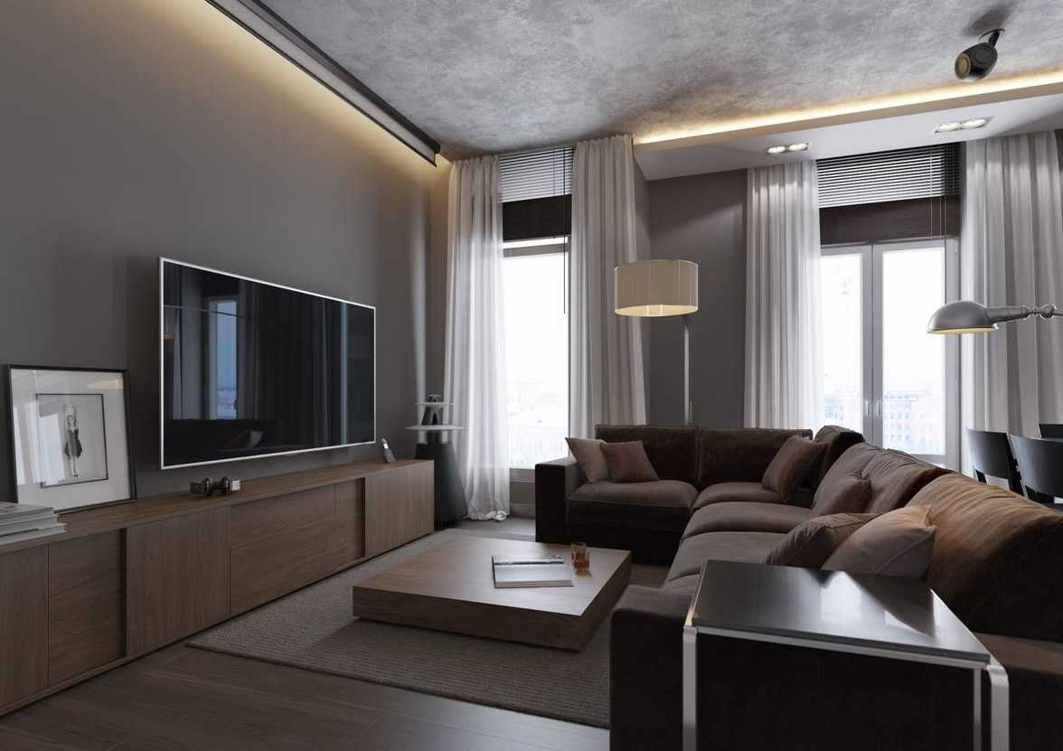 Коричневый диван будет удачно смотреться на фоне серых, белых, красных или синих стен – это фоновые контрастные цвета, способные выдвинуть мебель на передний план.