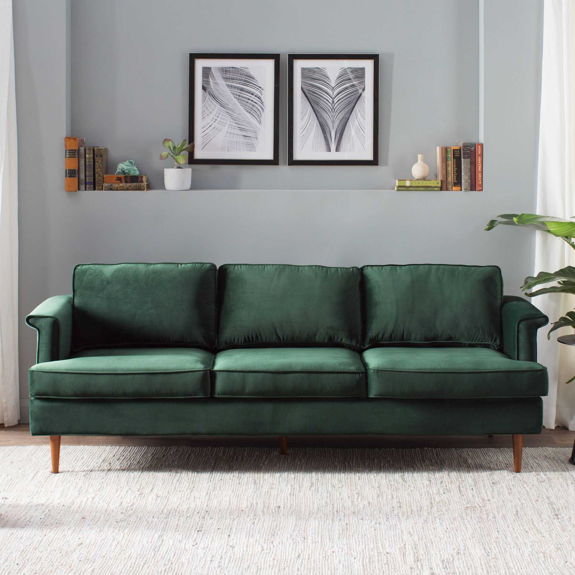 Красивый диван зеленого цвета будет эффектно смотреться в современных интерьерах в стиле фьюжн, лофт, модерн, минимализм и эко.