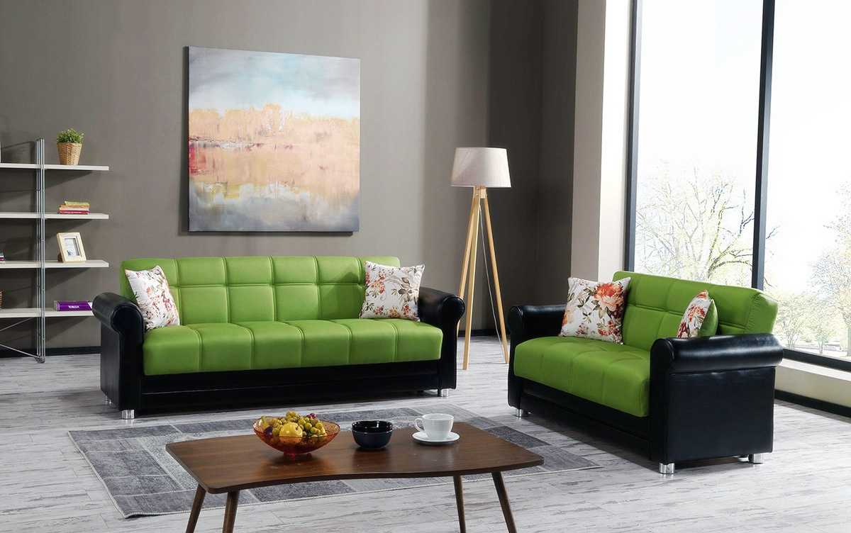 Зелёный цвет считается умиротворяющим. Он дарит покой, ощущение защищённости, безмятежности, вызывает положительные эмоции. Этот цвет подходит для оформления разных комнат – детской, спальни и гостиной. В помещении, предназначенном для отдыха и общения с гостями, зелёный цвет впишется просто идеально. Центральным элементом мебели гостиной комнаты является диван, поэтому именно его часто выбирают в зелёном цвете.