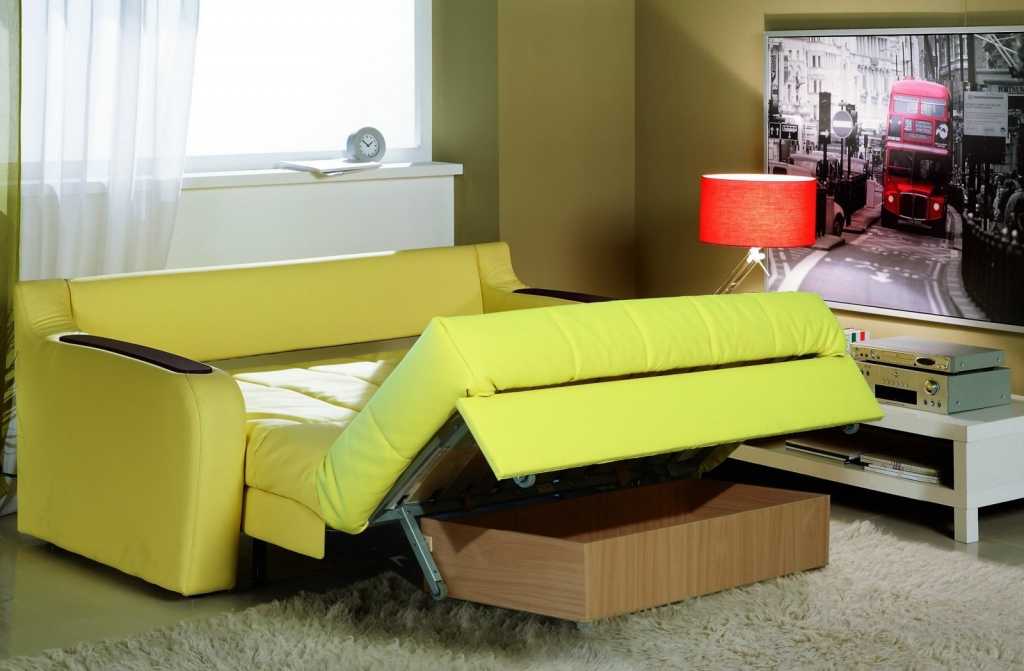 Обратите внимание! К недостаткам “раскладушек” американского и французского типов относят отсутствие в моделях отсеков для хранения белья. Диваны с таким механизмом “съедают” часть пространства комнаты – в разобранном виде требуют наличия свободного места