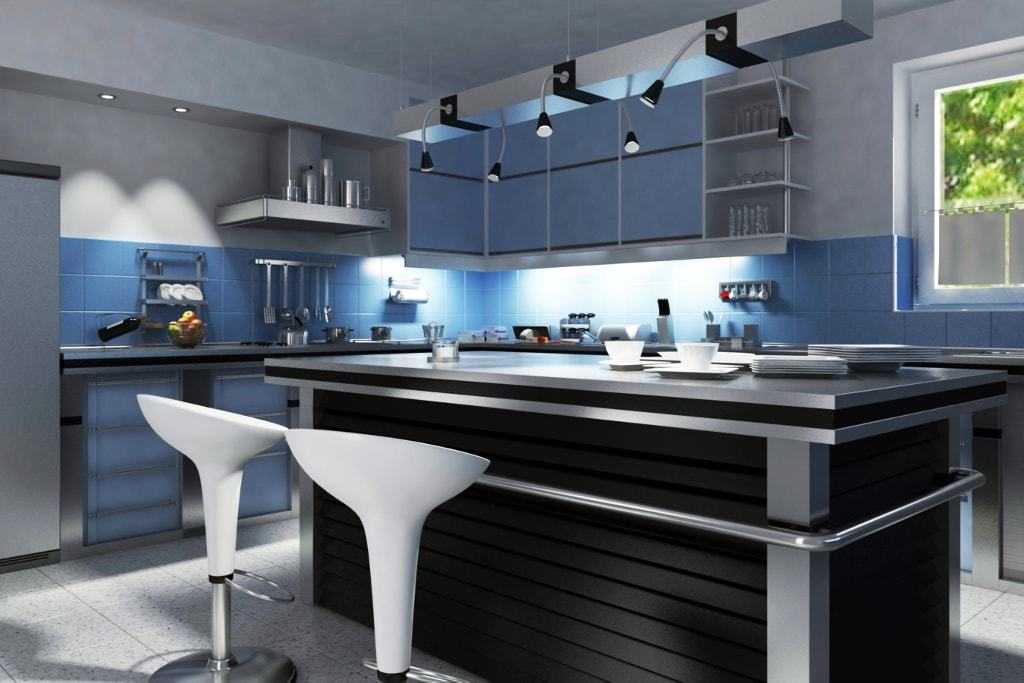 Хай-тек – оформление кухонного пространства в синем оттенке будет выглядеть ярко и стильно. Все тона подойдут для дизайна hi-tech