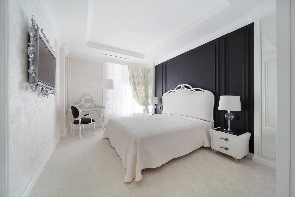 Белые обои и такого же цвета напольное покрытие допустимы только в одном случае – если их оттенки полностью не сливаются. Они применяются в таких стилях, как модерн и новая классика. Не надо бояться использовать черную дверь. Такое сочетание придаст помещению оригинальный и органичный внешний вид.