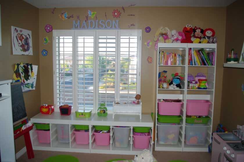 Она к слову должна быть хорошо освещена, и самый лучший вариант — это когда стол находится около окна. В зоне для игр должны быть ящики с игрушками и обязательно теплый ковер, чтобы ребенок не простудился.