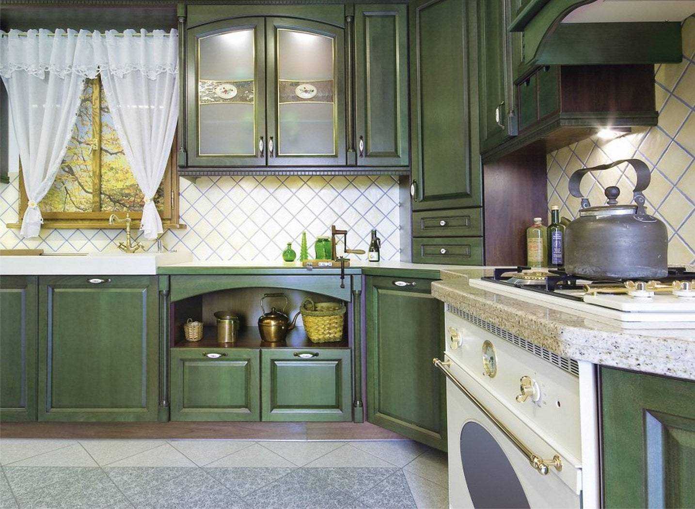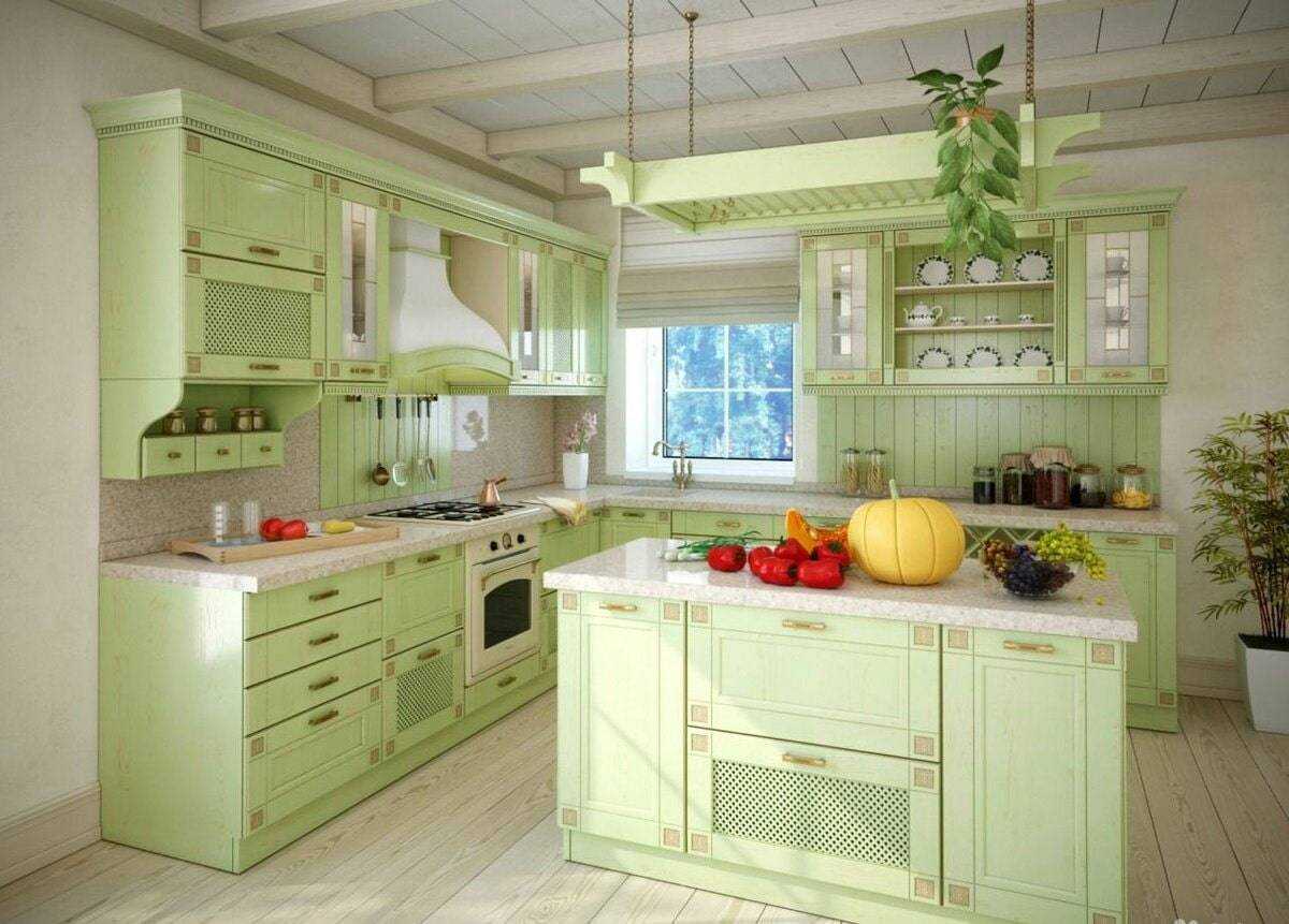 Светло-зеленые, салатовые, нефритовые колеры, оттенок изумруда или мяты являются оптимальным решением для кухни. Мягкие и спокойные тона формируют приятную атмосферу в помещении.