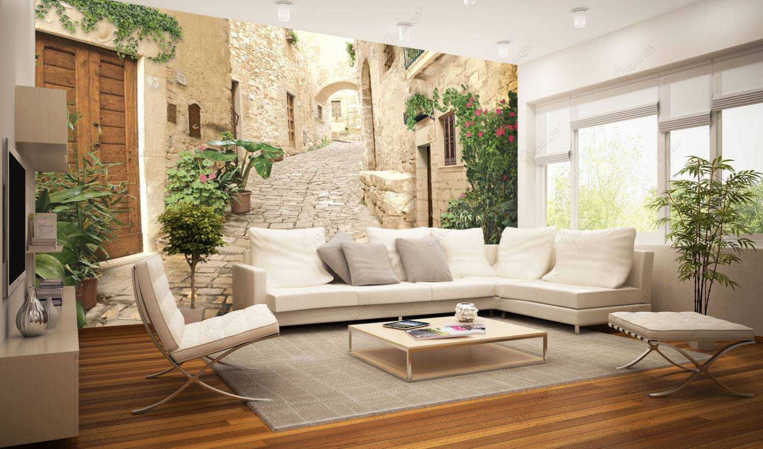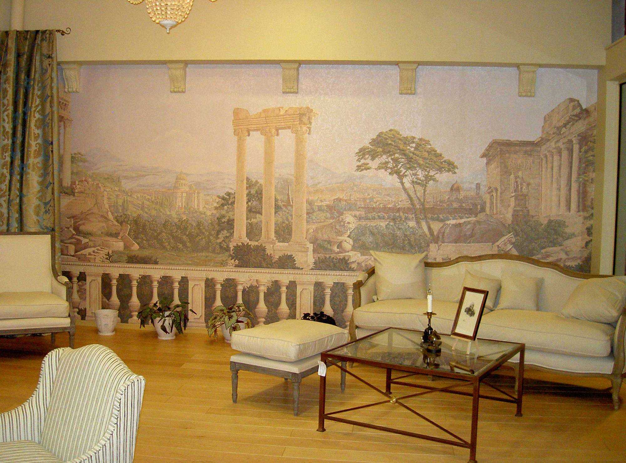 Фреска в интерьере гостиной