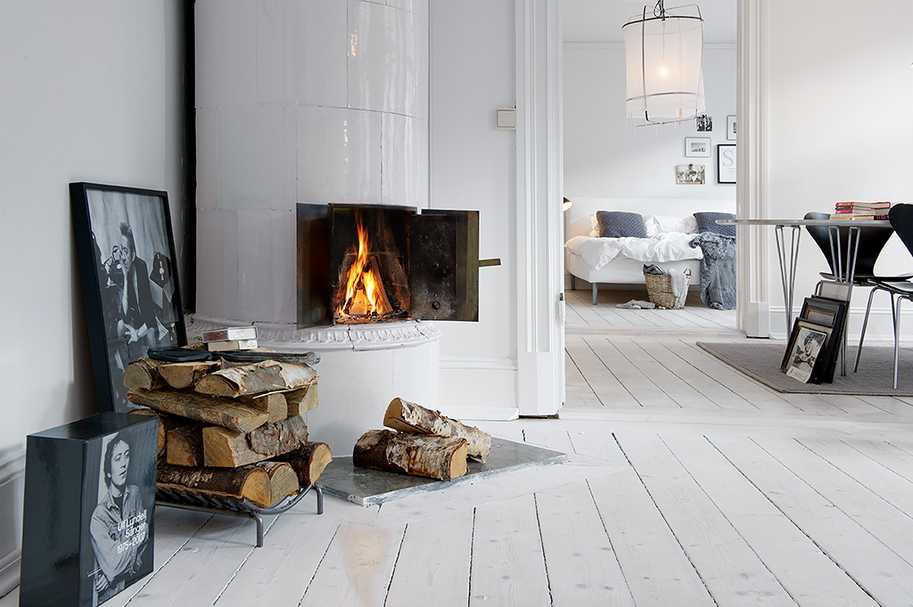 Также изюминкой скандинавских каминов являются угловое расположение и строгие плавные линии. Встречаются исключения из этих правил, но их можно отнести скорее к дизайнерским экспериментам.