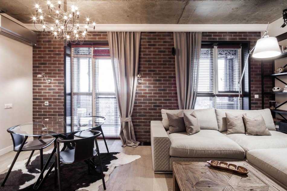 Дизайн зала в стиле лофт