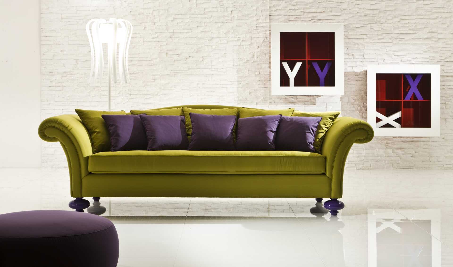 - Авангард – допускается смешение разнообразных ярких цветов зеленой палитры. Диван необычных очертаний с неестественными изгибами, неправильной спинкой.