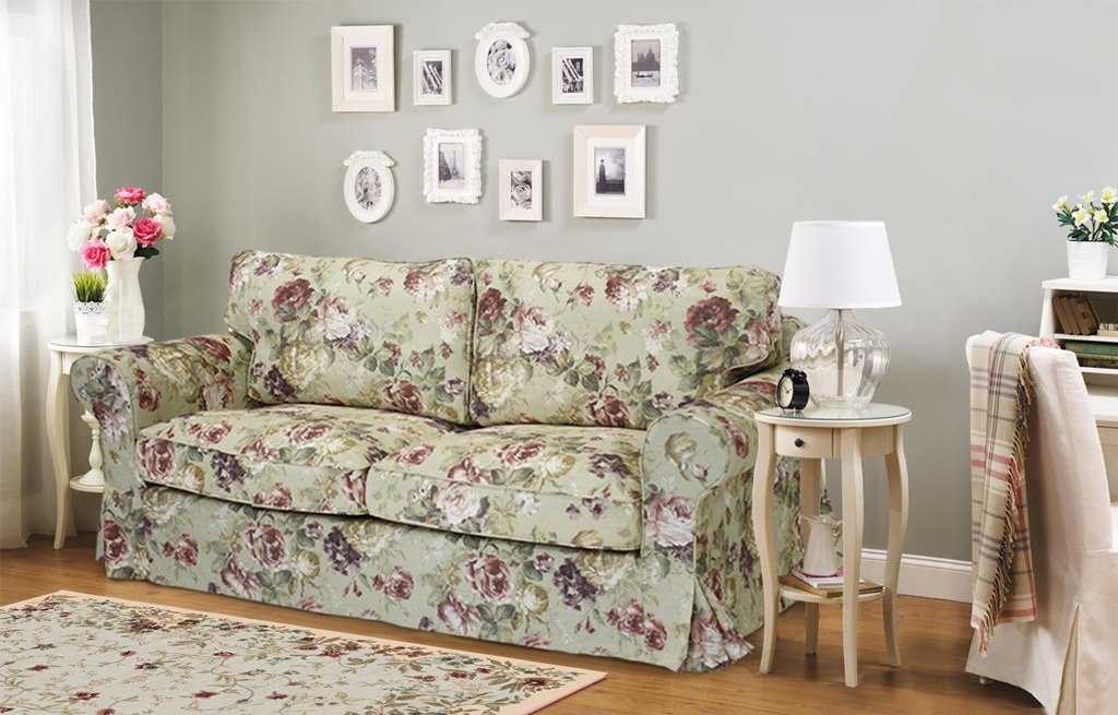 - Прованс – светлые тона, напоминающие цвет морской волны, молодой травы, цветной орнамент. Диван декорирован рюшами, кружевом, мягкими подушками.