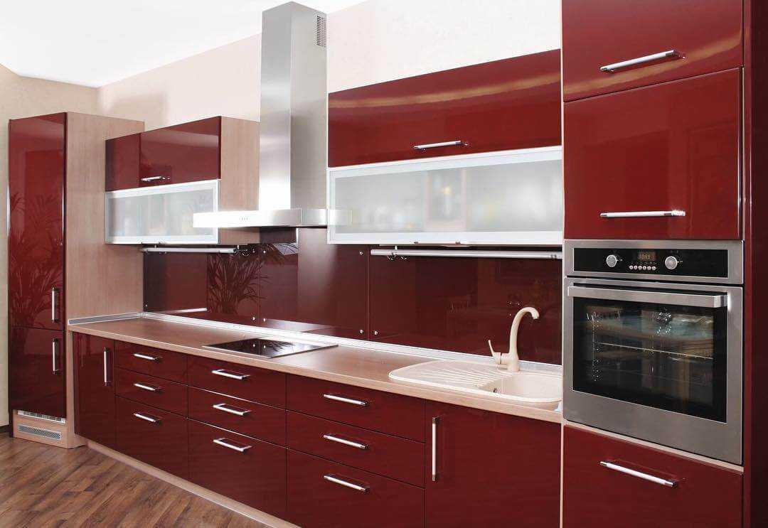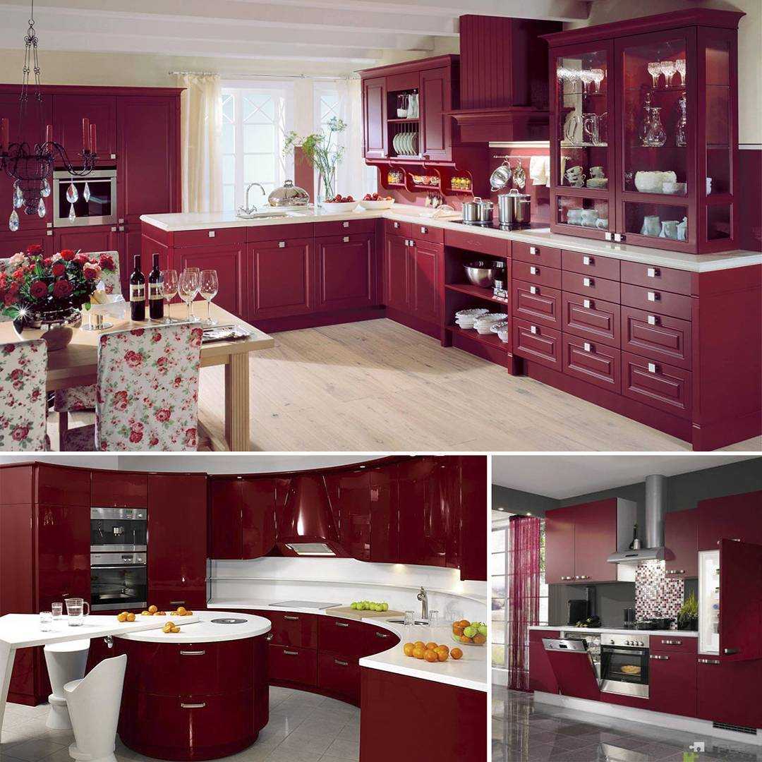 Дизайн стен, потолка, пола на кухне в бордовых цветах