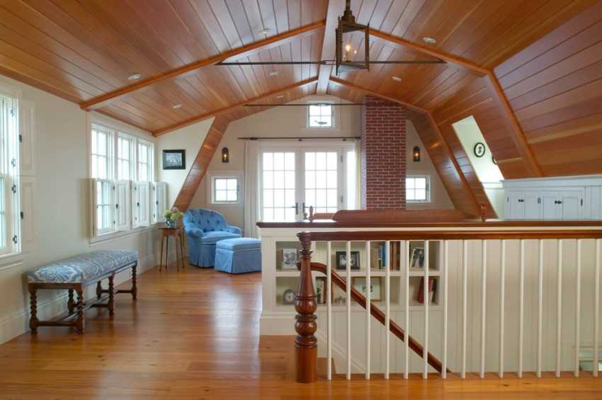 Ламинат на стене и потолке мансардного помещения