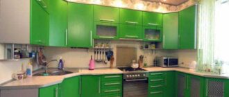 Варианты цветовых поддержек Помимо самого гарнитура, сделать кухню зеленой могут шторы, потолочные светильники, обеденный