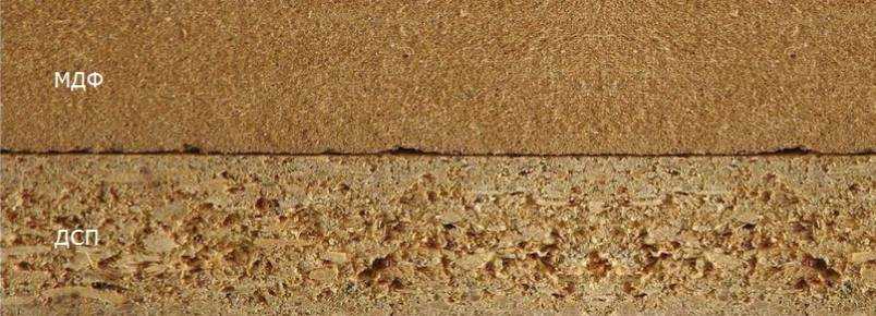 Для большей наглядности отличий между двумя материалами можно сравнить структуру ДСП с неоднородным сырьем, пропущенным через блендер, а МДФ – с продуктом из мясорубки. Плотность плиты МДФ варьируется от 600 до 800 кг/м 3 , что в условиях повышенной влаги позволяет материалу по некоторым характеристикам превосходить даже натуральную древесину.