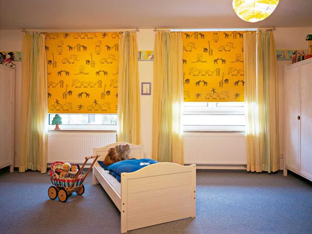 Для детской комнаты могут быть использованы любые виды тканей, но практичнее будет та, которая не собирает пыль и хорошо стирается. К тому же лучше выбирать натуральные материалы, например, лён. Прекрасным вариантом будут бамбуковые римские занавески. Наиболее практичными остаются роллетные ткани, которые обработаны противопылевыми средствами и превосходно стираются.