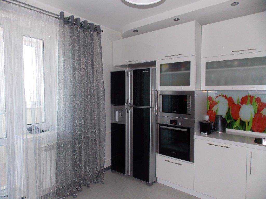 - Форма. Для маленьких кухонь подходят короткие занавески. Длина может доходить до середины радиатора, а может быть выше подоконника. В просторных кухнях используют сложные шторы с драпировками. Их фиксируют шнурами на нужной высоте.