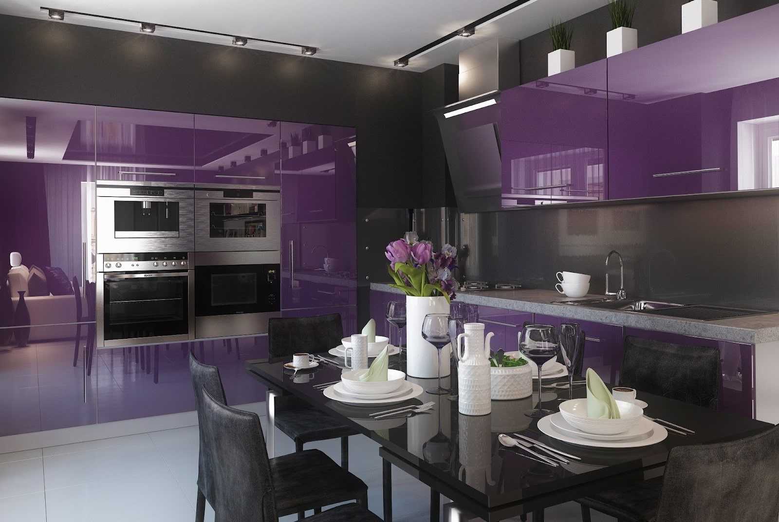 Дизайн кухни фиолетового цвета