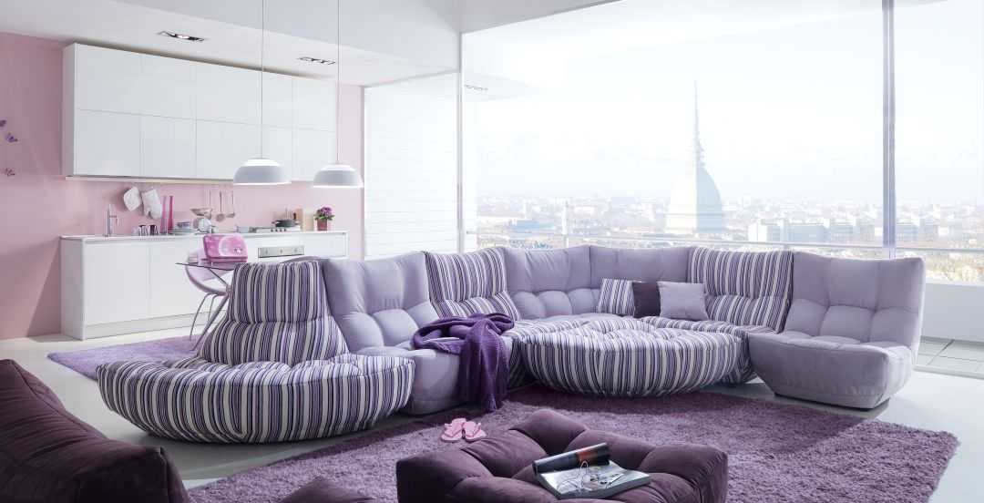 Сиреневый цвет в интерьере гостиной